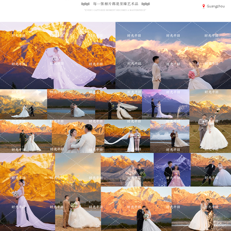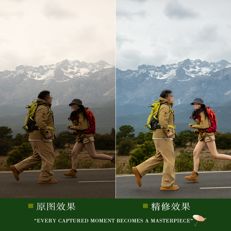 旅拍婚纱照精修大理丽江日照金山云杉坪蓝月谷加雪山抠图换背景PS