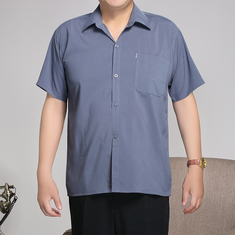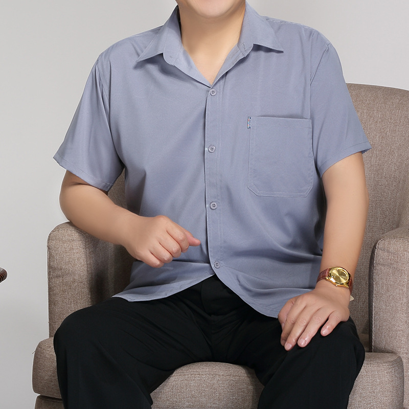 父亲中老年男士衬衫爸爸装短袖衬衫老年人男装爷爷装夏装老人衬衣