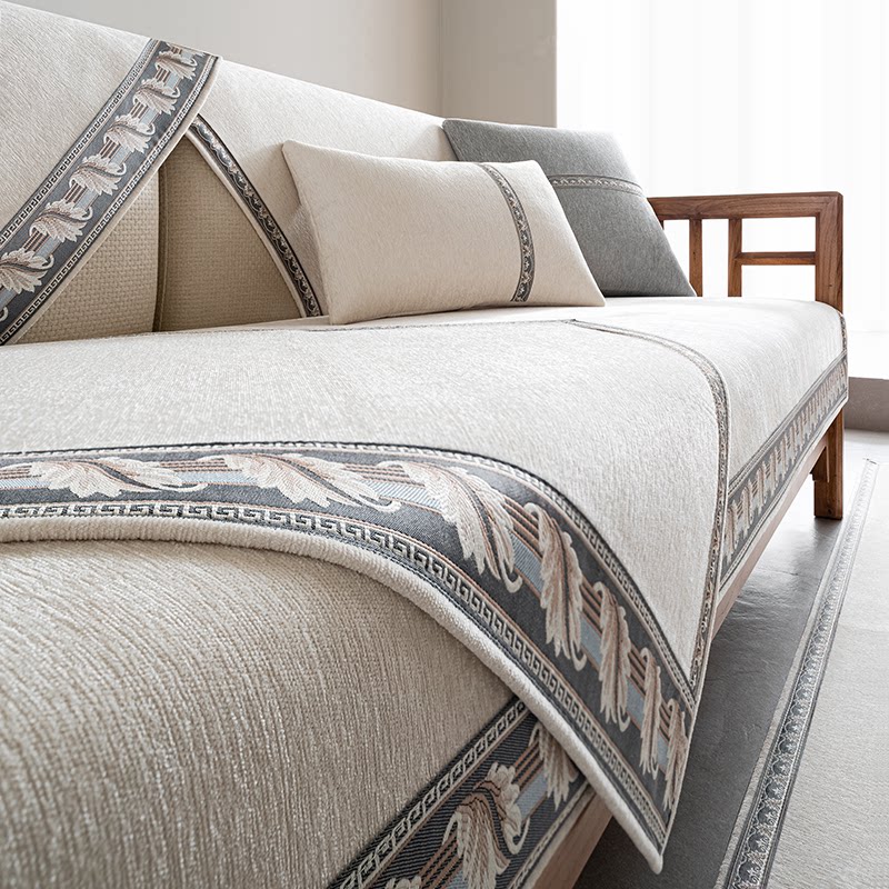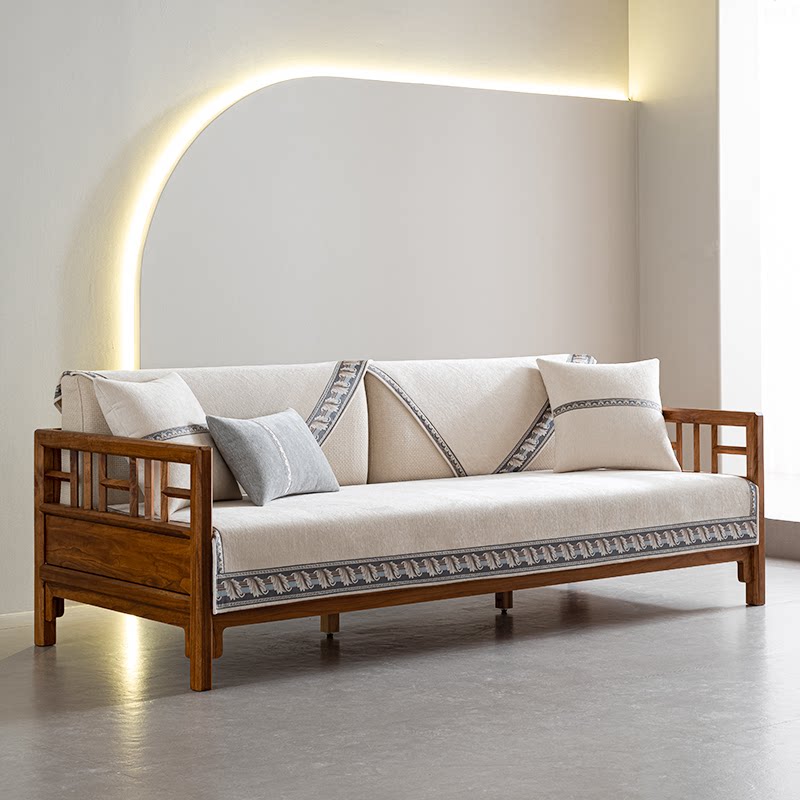 中式实木沙发垫四季通用靠背巾盖布ins风雪尼尔防滑坐垫套罩红木