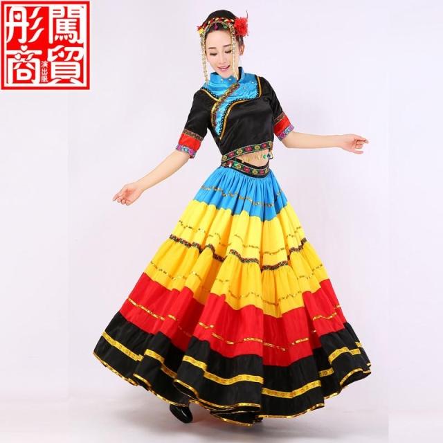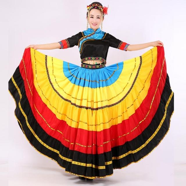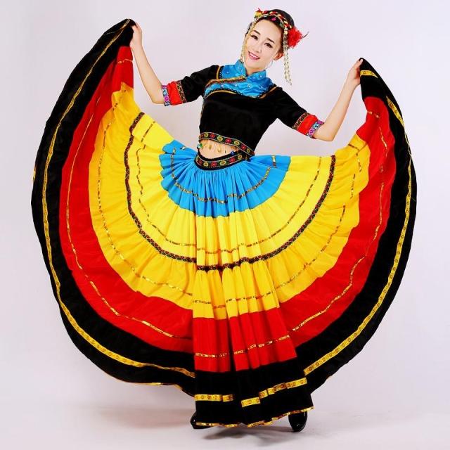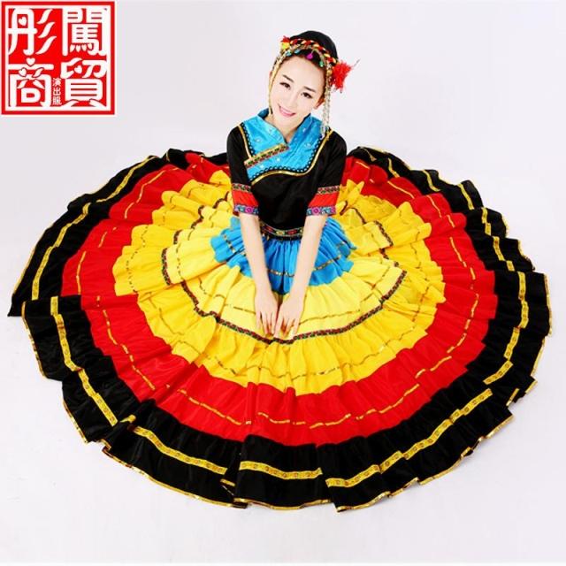 高档彝族侗族苗族服舞蹈火把节演出服装2023新款黎族七彩大摆裙女