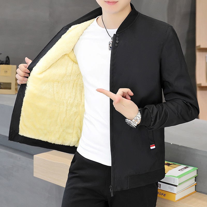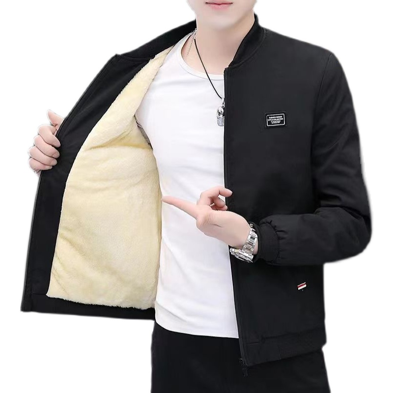 2024秋冬季加绒加厚款男士外套青年修身百搭潮夹克休闲保暖外套男