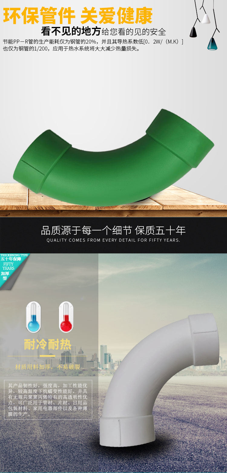 PPR顺水弯头大弯大流量管件20 4分25 6分 32PPR水管管材管件配件