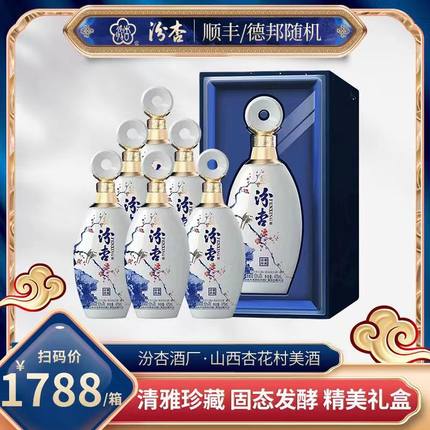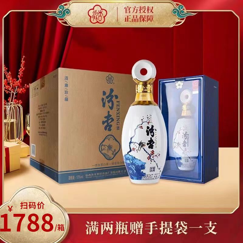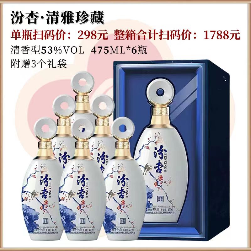 山西杏花村汾杏清雅珍藏清香型53度475ml*6瓶高度白酒粮食酒整箱