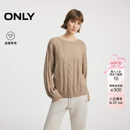ONLY2026春季新款显瘦纵向肌理绞花纵向坑条纹宽松毛衣针织衫女