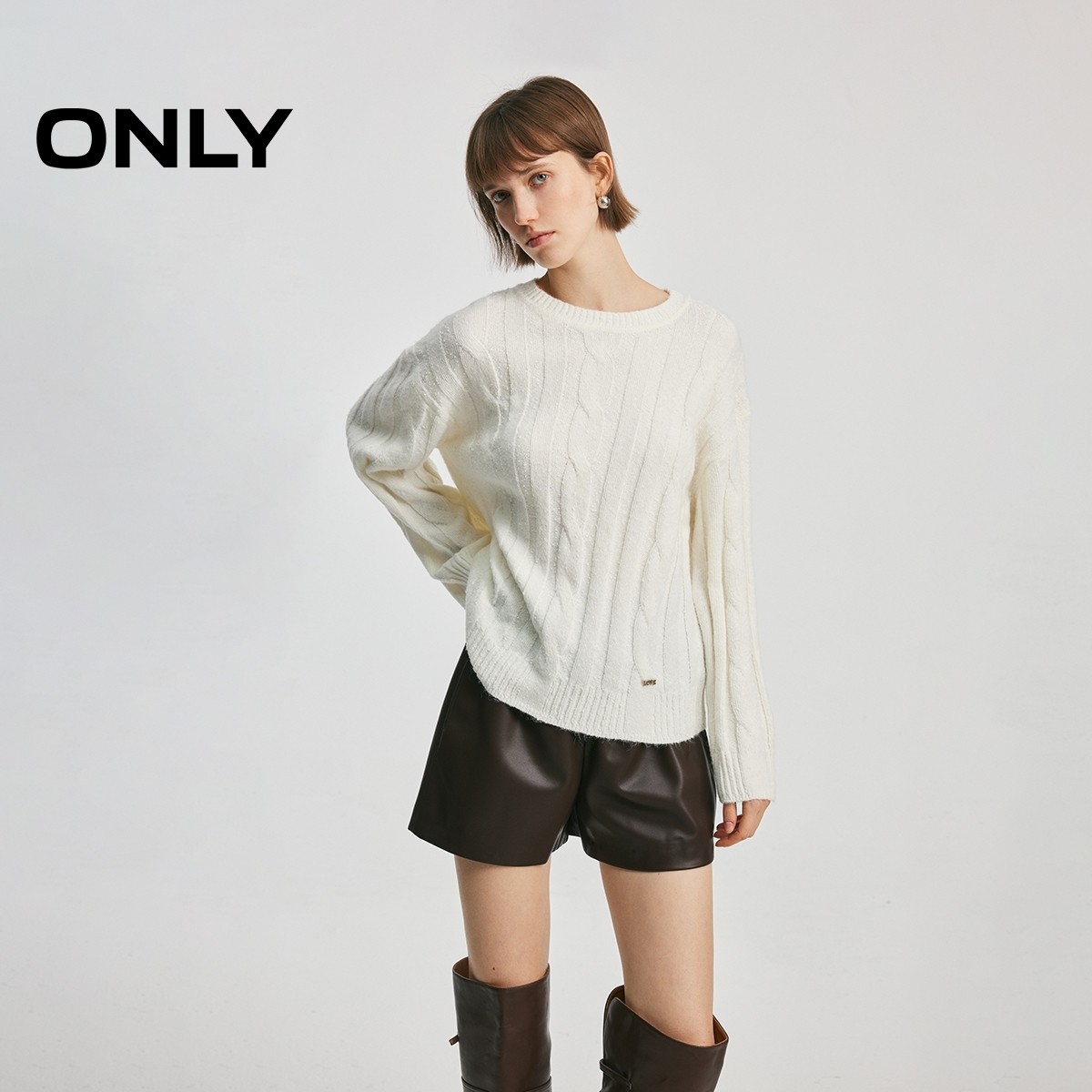 ONLY纵向肌理绞花针织衫