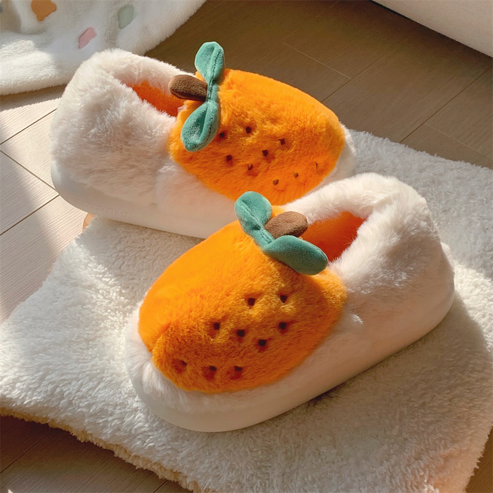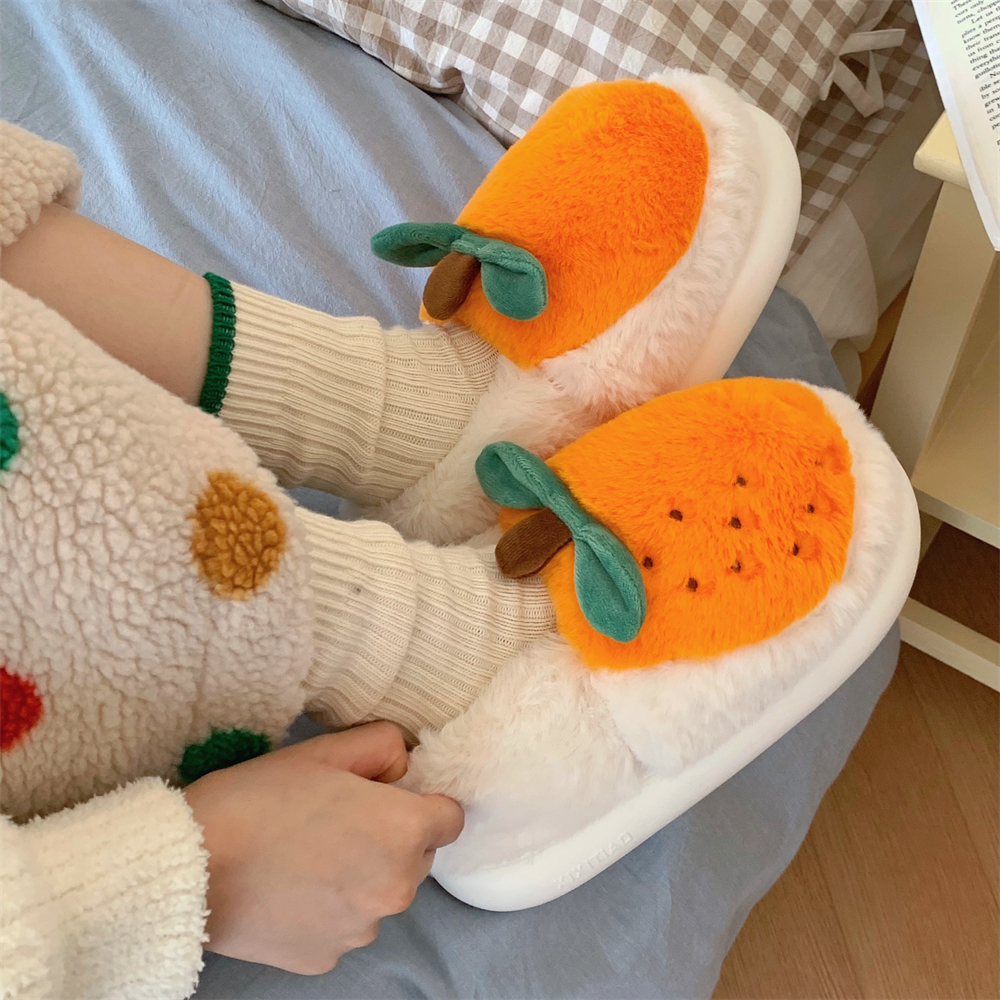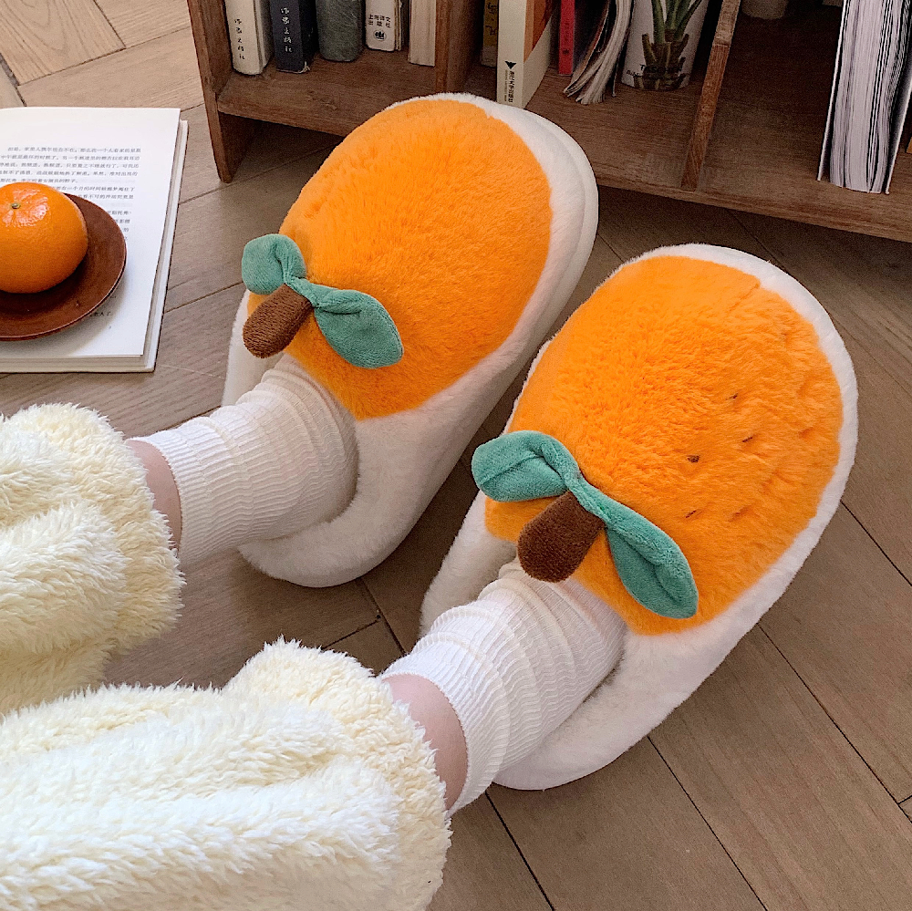 细细条 日系可爱橘子软底棉拖鞋女秋冬季休闲居家毛绒保暖月子鞋