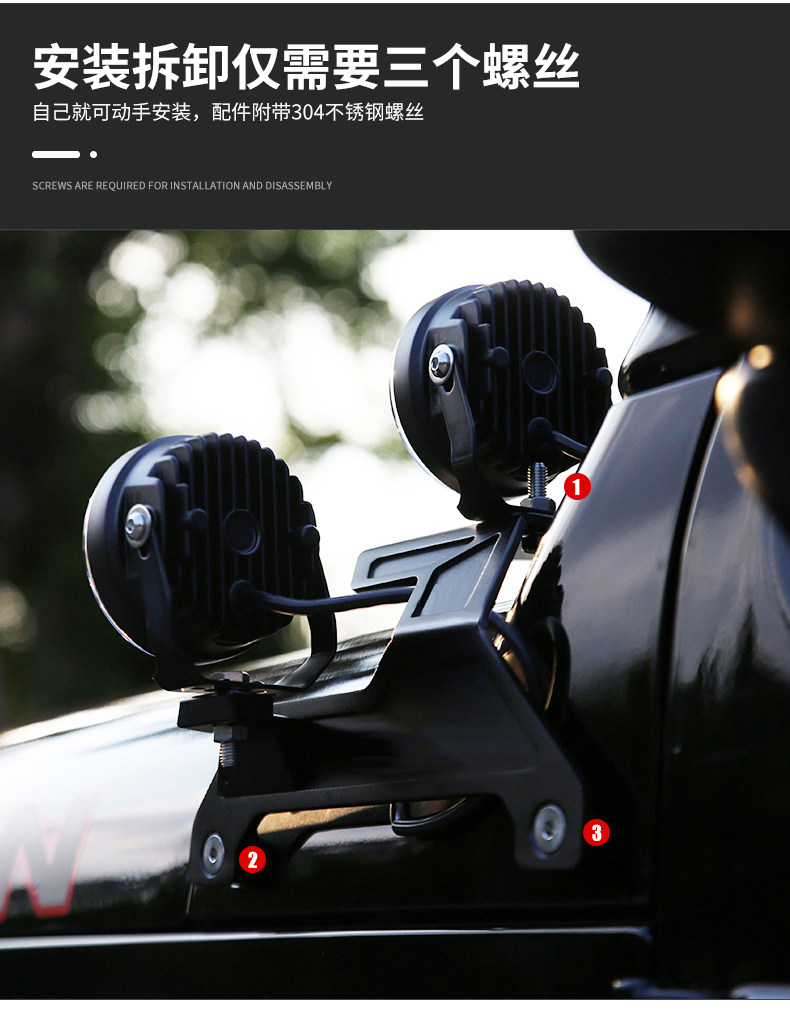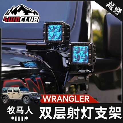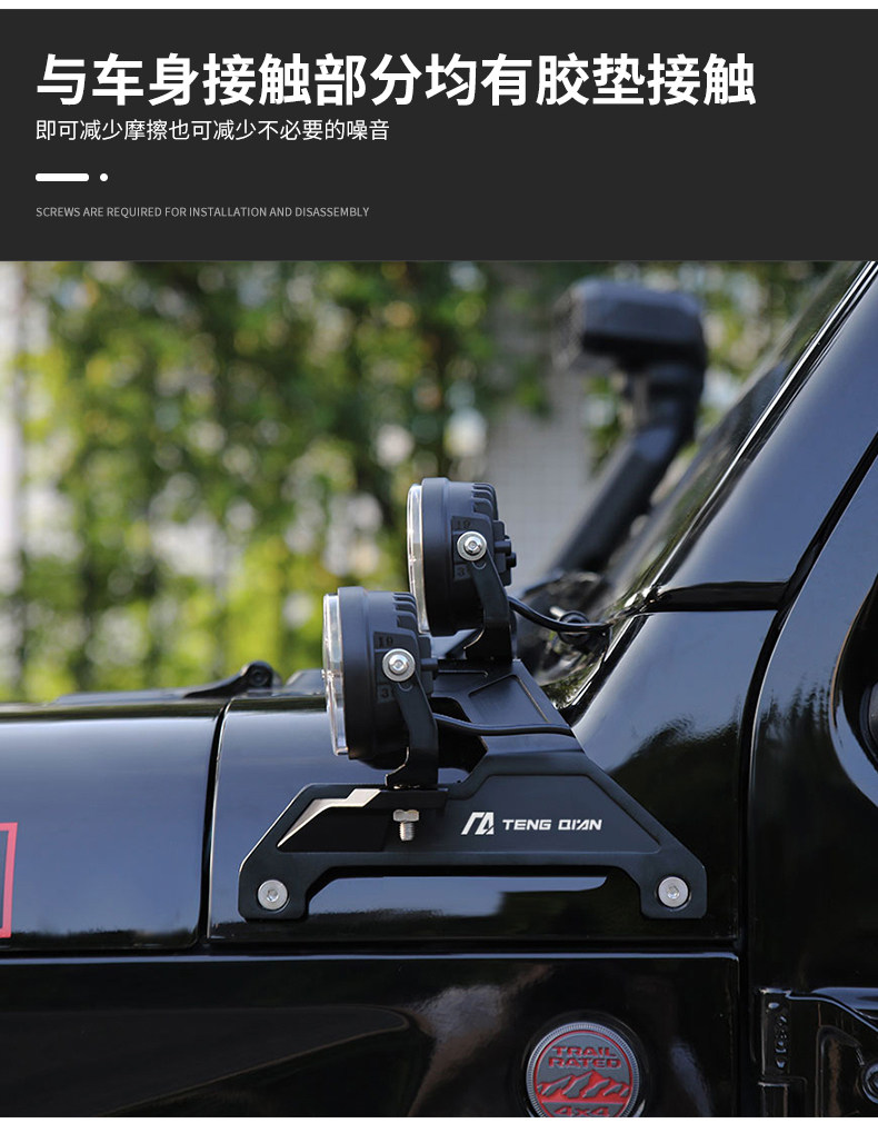 TENGQIAN腾谦牧马人JL改装A柱双层射灯支架双灯高低快拆灯架