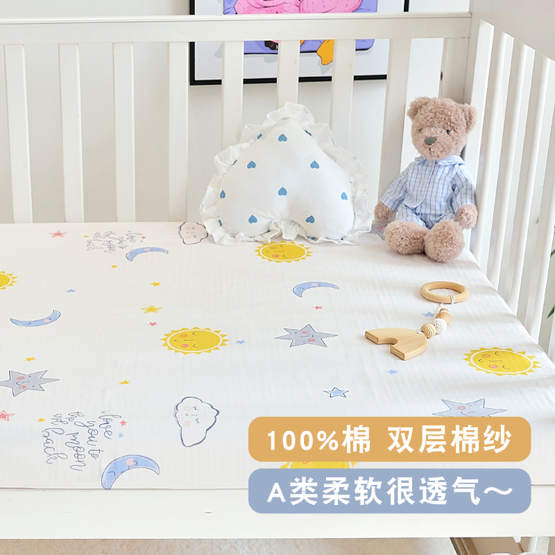 儿童床笠母婴级A类纯棉单件双层纱婴儿宝宝全棉薄床垫套床罩定制