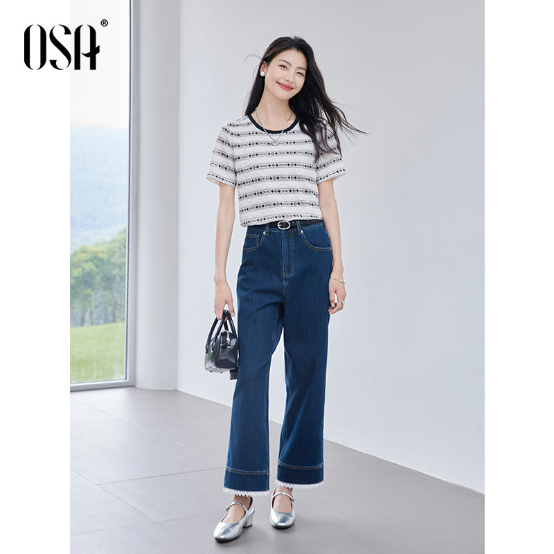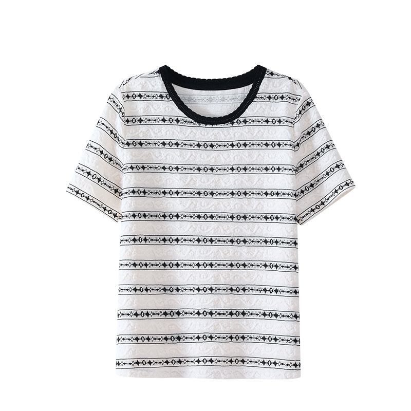 OSA欧莎复古提花立体蕾丝T恤女2025夏季新款小众休闲通勤短袖上衣