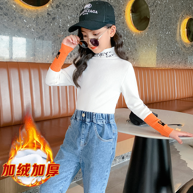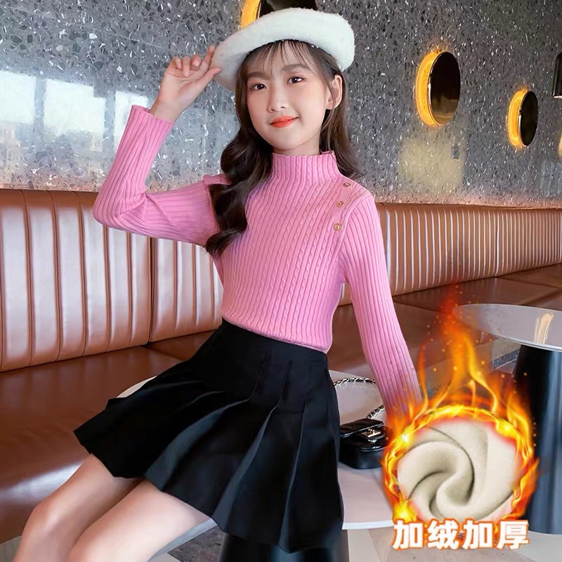 女童毛衣秋冬加厚儿童加绒打底衫2021年新款中大童黑色女孩半高领