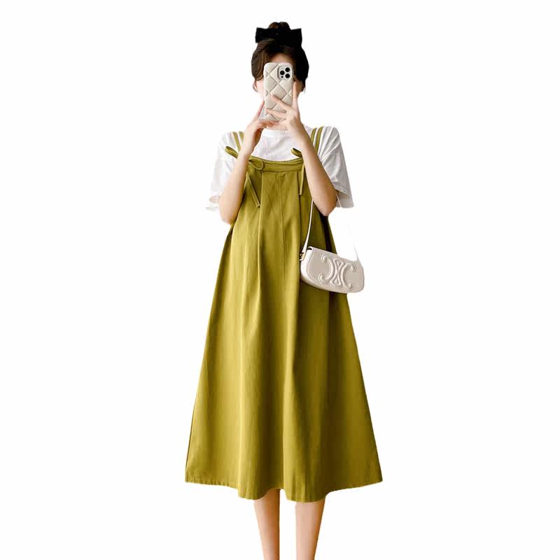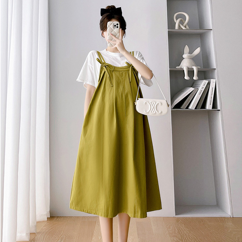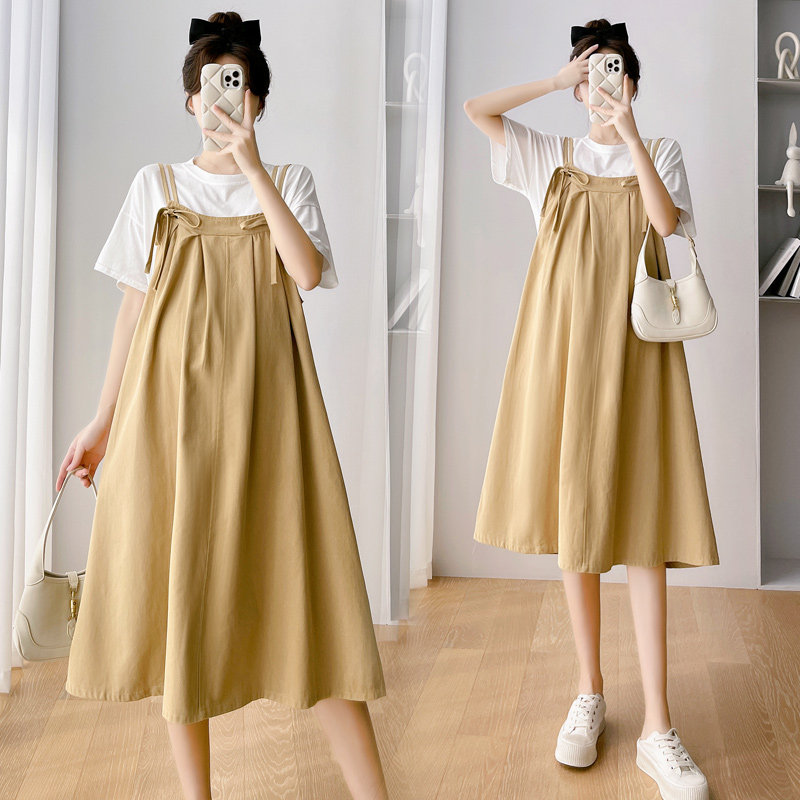 孕妇装夏天连衣裙中长款时尚宽松遮肚吊带裙洋气减龄短袖网红裙子