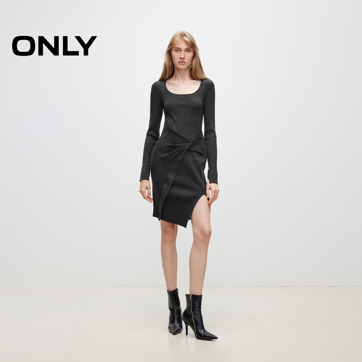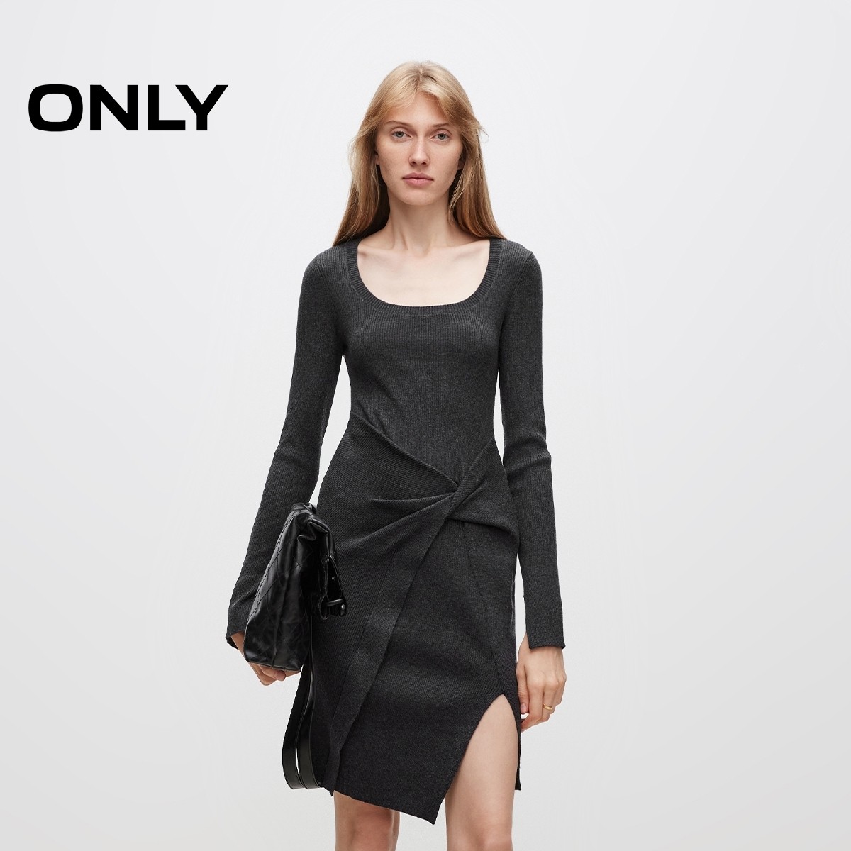 ONLY秋季螺纹修身显瘦U型领针织短裙连衣裙女|124346001