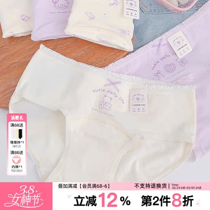香芋奶甜~纯棉16cm加长裆7a抗菌内裤2026新款夏薄款少女学生可爱