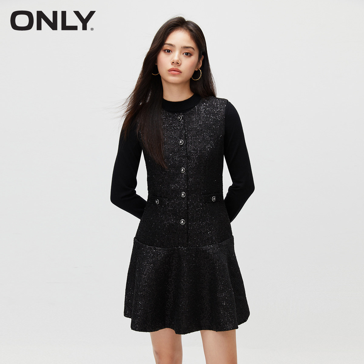 【ONLY奥莱】秋冬时尚百搭修身圆领套装短款连衣裙女