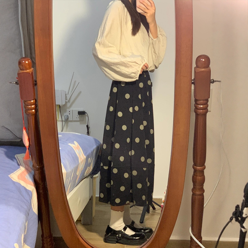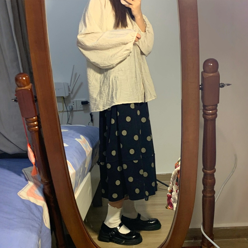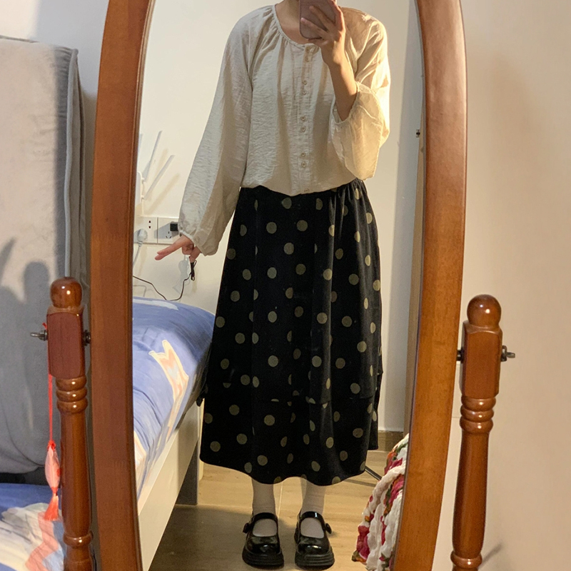 森系复古波点灯芯绒半身长裙女秋冬季大码胖mm显瘦梨形伯克利伞裙