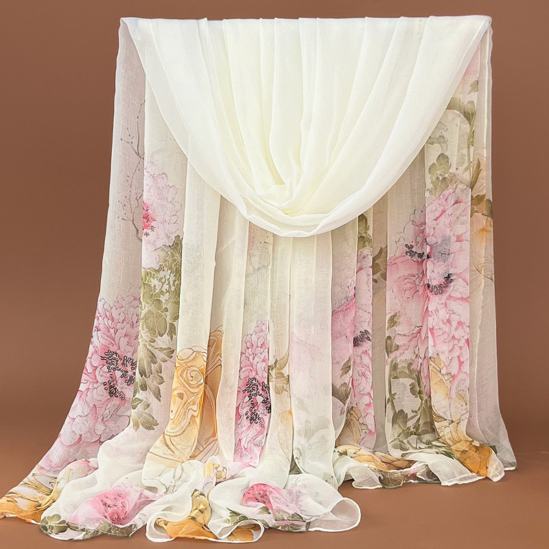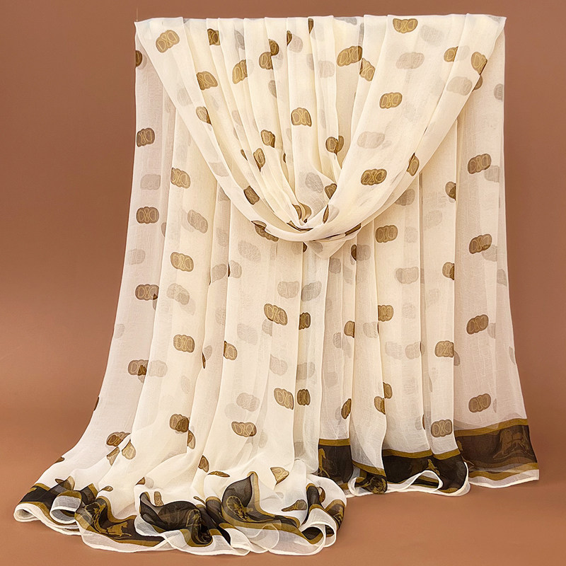 时尚中国红丝巾冬季女士鳄鱼皱纱巾长款百搭印花围巾防晒披肩沙滩
