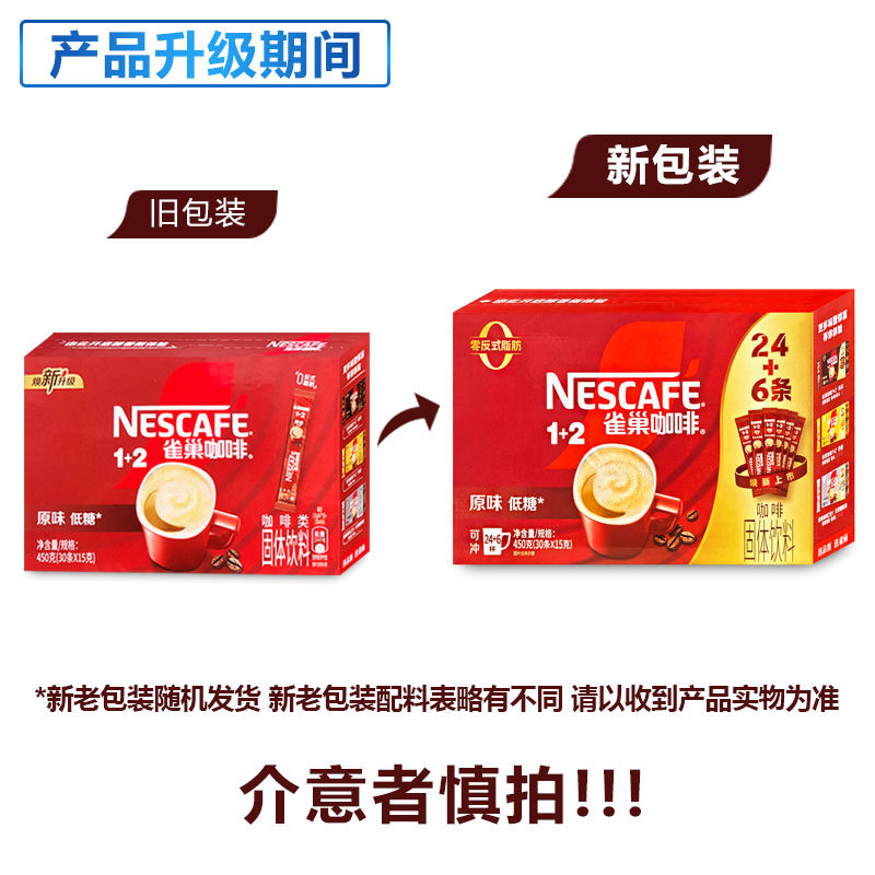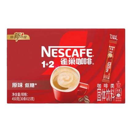 雀巢原味咖啡速溶咖啡粉盒装三合一低糖学习工作熬夜冲调饮品