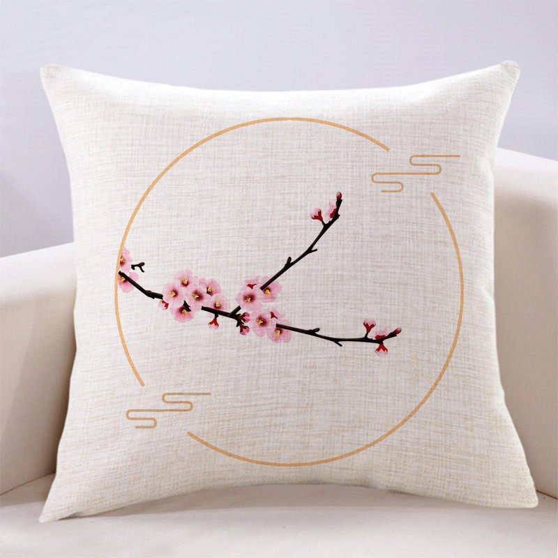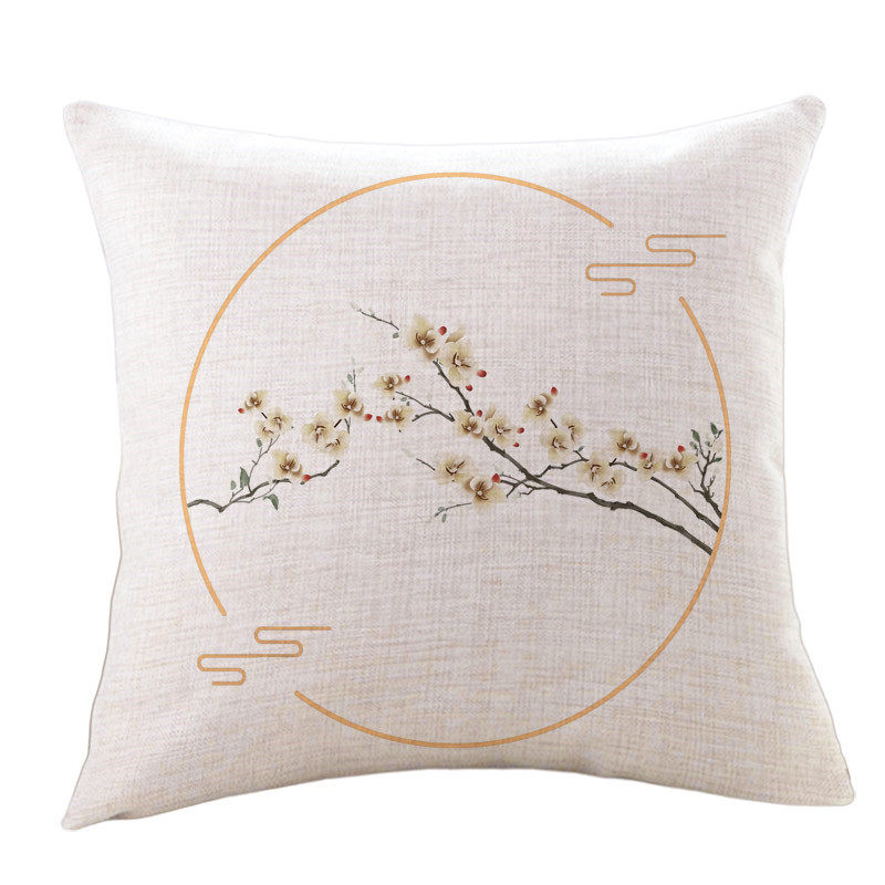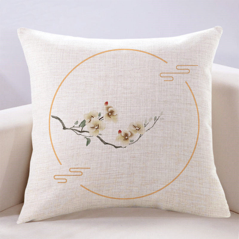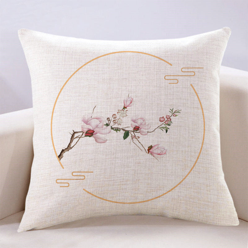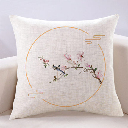 现代新中式简约清新花鸟客厅沙发抱枕套含芯床头榻榻米靠背坐垫套
