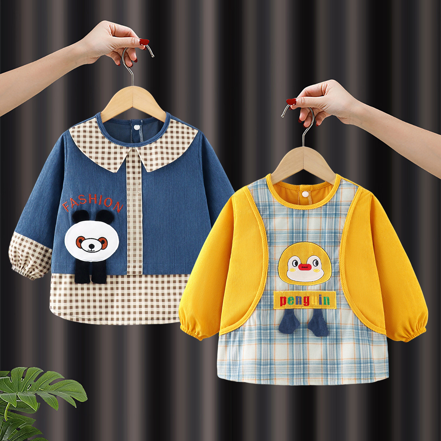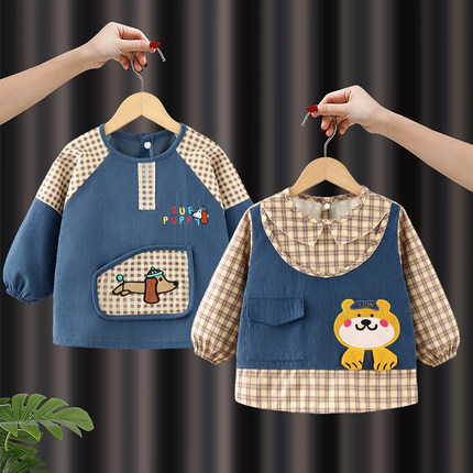 灯芯绒儿童罩衣幼儿园女宝宝吃饭围兜男孩防水防脏反穿衣饭兜围裙