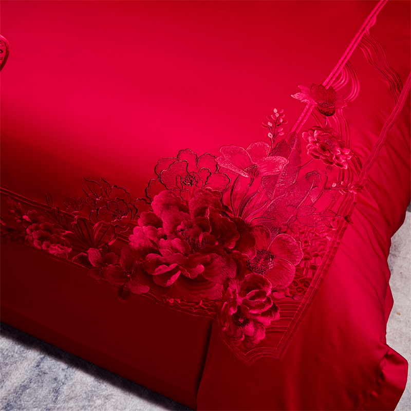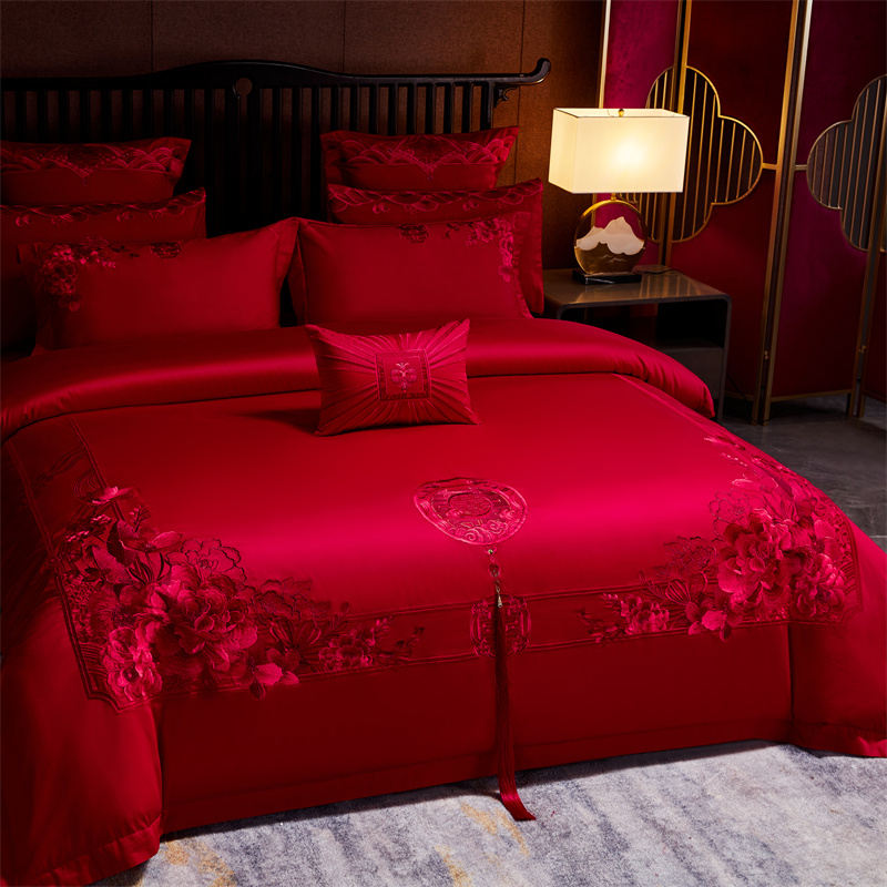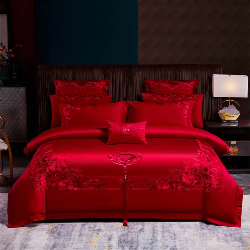 全棉新中式婚庆四件套纯棉结婚床上用品新婚红色喜字床品套件