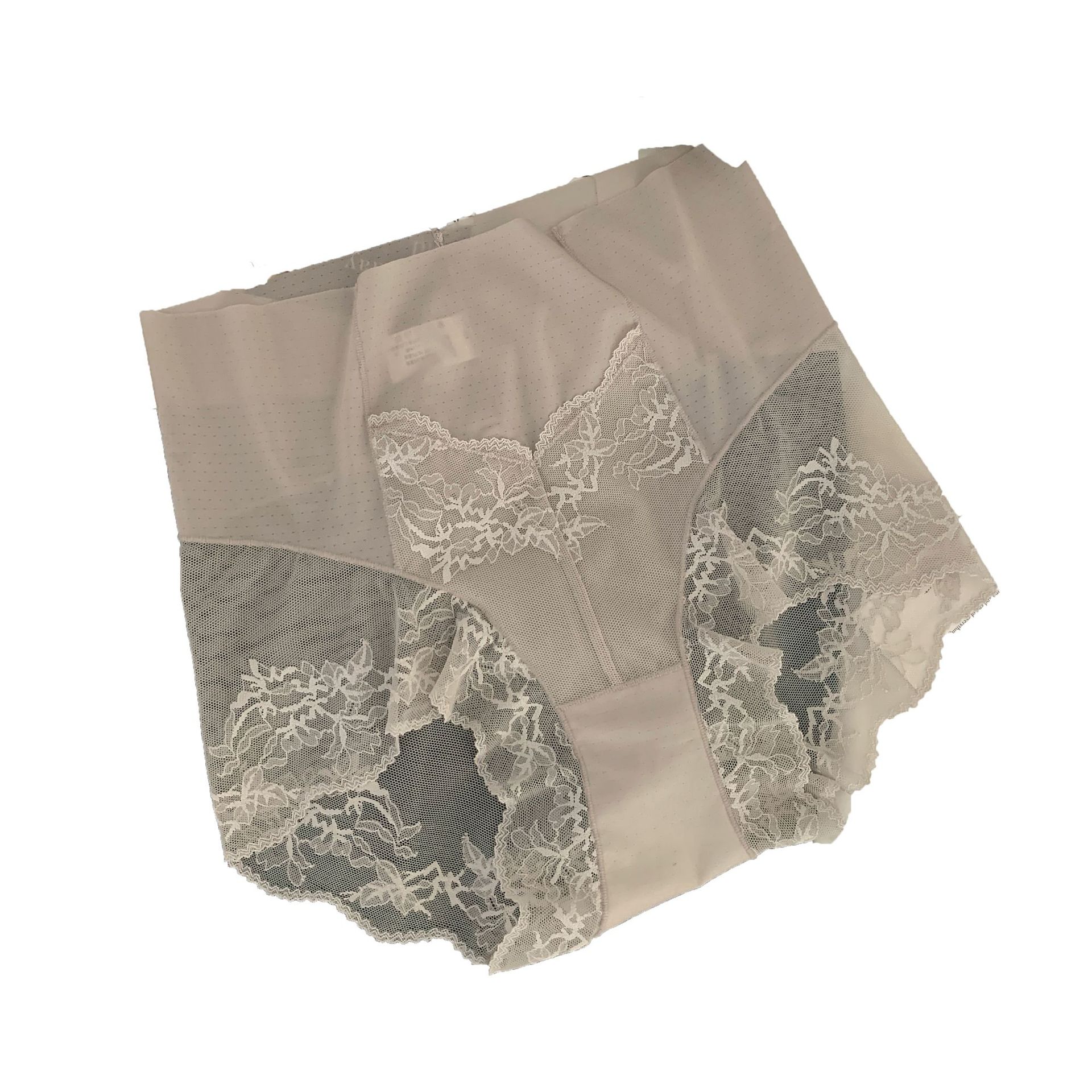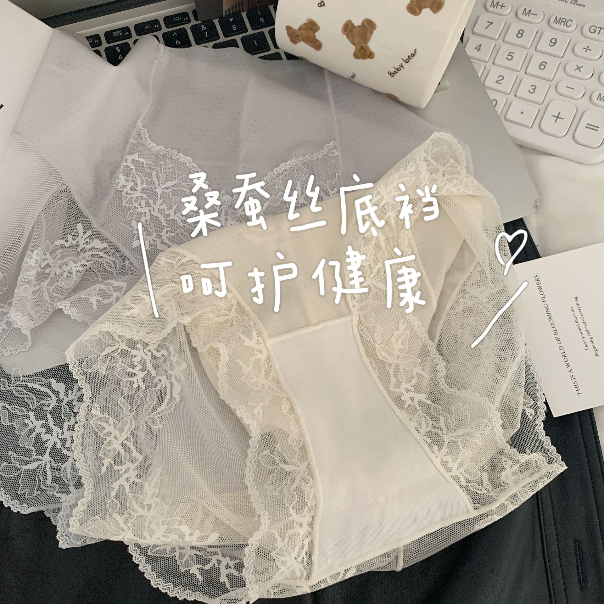 高腰轻收腹透气孔网纱蕾丝大码内裤女桑蚕丝裆高弹轻塑美臀三角裤