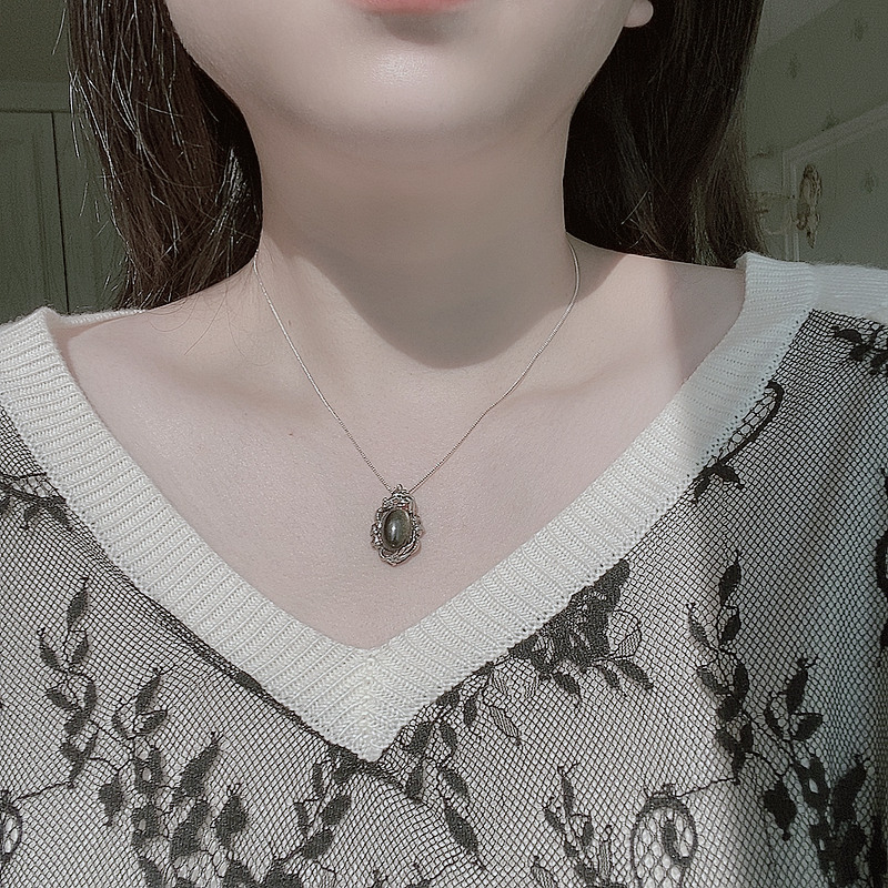 925泰银天然黑曜石吊坠项链黑绳生肖龙纯银首饰男生中性情侣礼物
