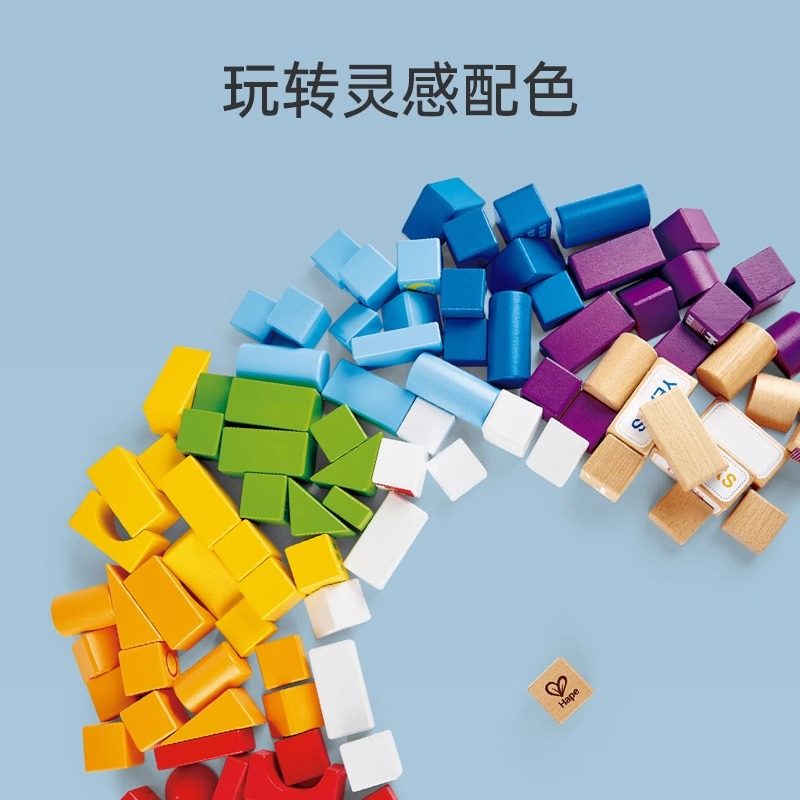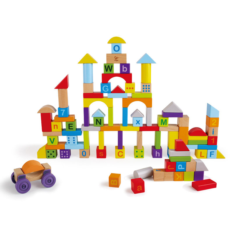 Hape100粒双面字母数字积木木质拼装创意宝宝早教儿童益智力玩具
