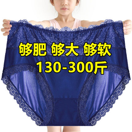 胖mm高腰冰丝内裤头女蕾丝网纱纯棉裆200-300斤特大码三角短裤衩