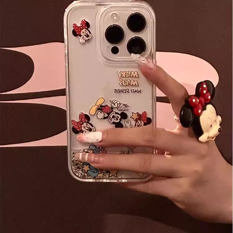 适用苹果16pro手机壳女款13个性闪粉米奇米妮iphone14promax保护套卡通plus透明15pro全包防摔12新款可爱11男