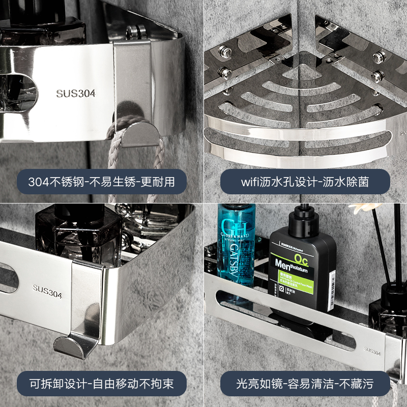 极速浴室三角不锈l钢置物架厕所厨房收纳置拐角免打孔壁挂式卫生