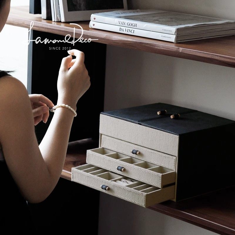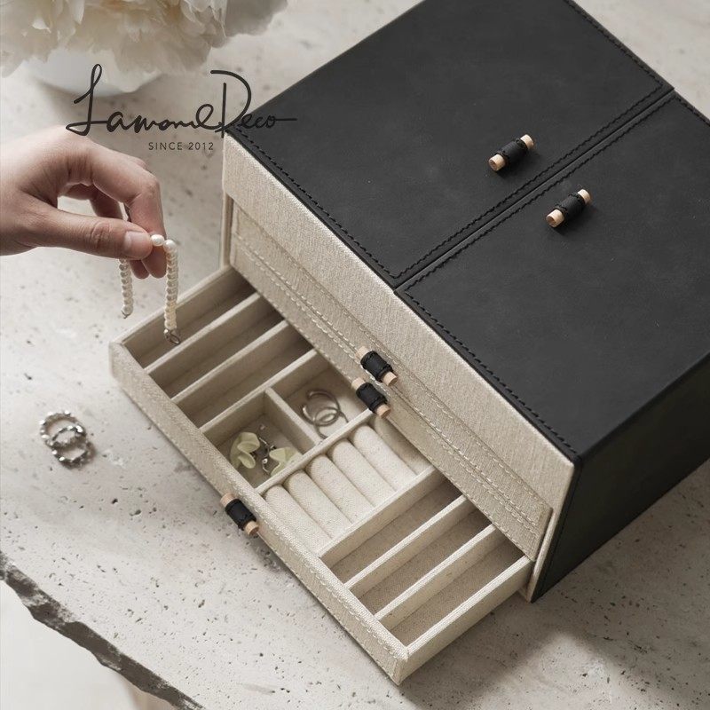 2025年新款首饰收纳盒高档精致大容量饰品耳钉项链桌面收纳盒抽屉