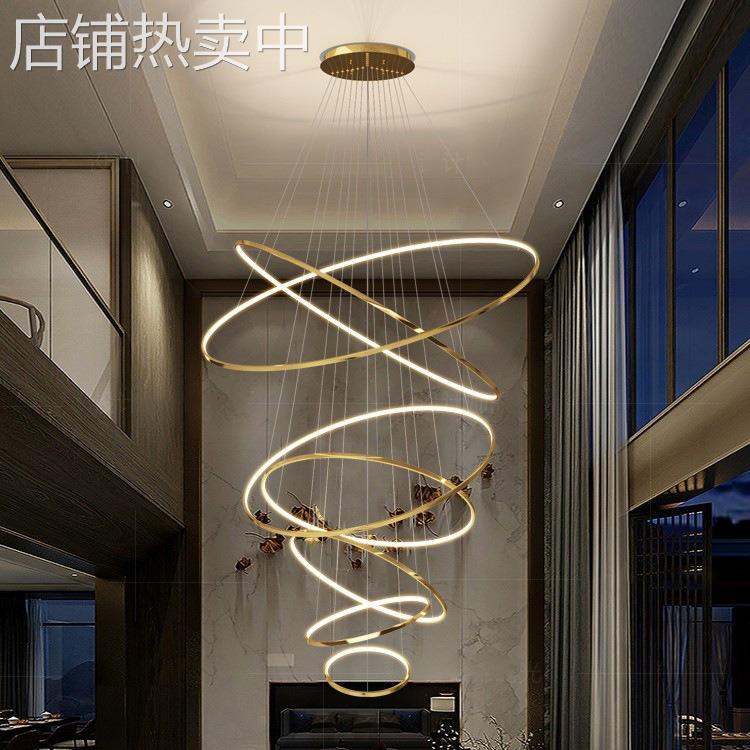 复式楼大吊灯现代轻奢别墅创意客厅灯酒店大堂售楼部loft楼梯吊灯
