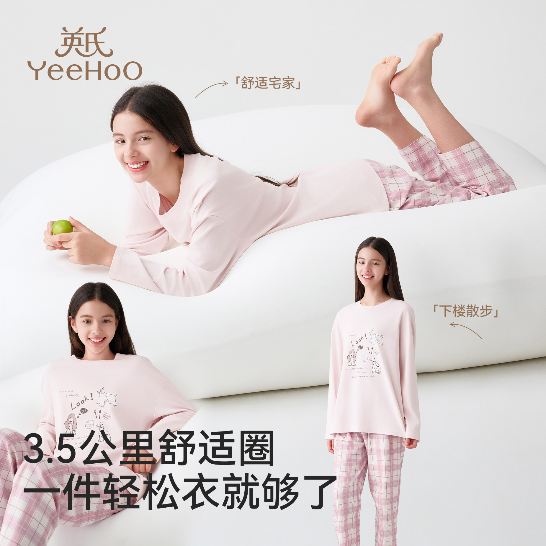 英氏100%纯棉透气不闷汗女孩睡衣