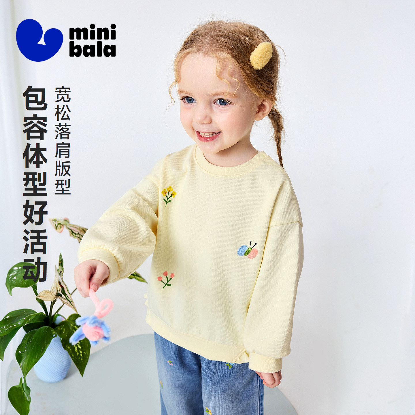 迷你巴拉巴拉女童宝宝卫衣春新品亲肤柔软轻盈萌趣可爱小绣花上衣