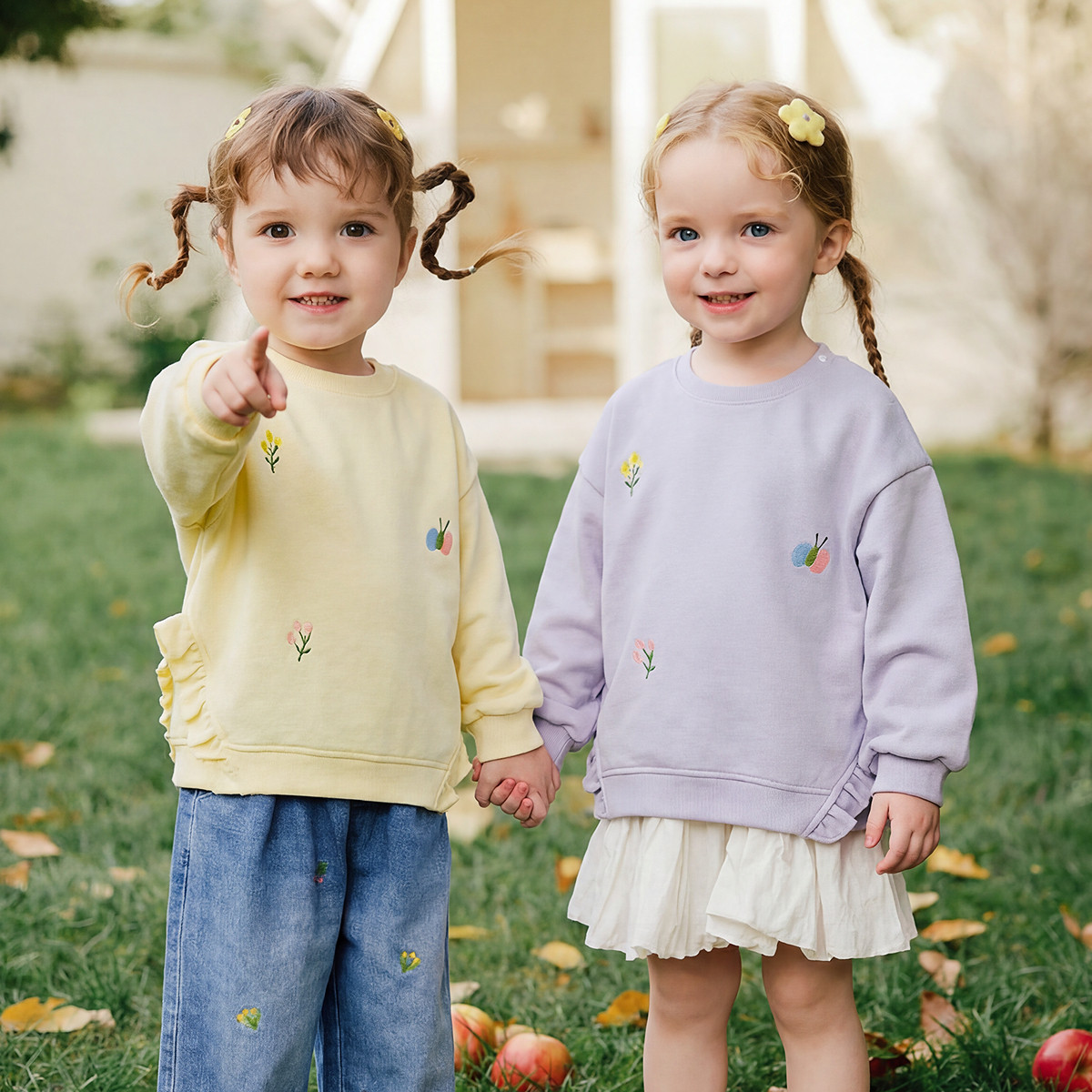 迷你巴拉女童春萌趣绣花卫衣可爱
