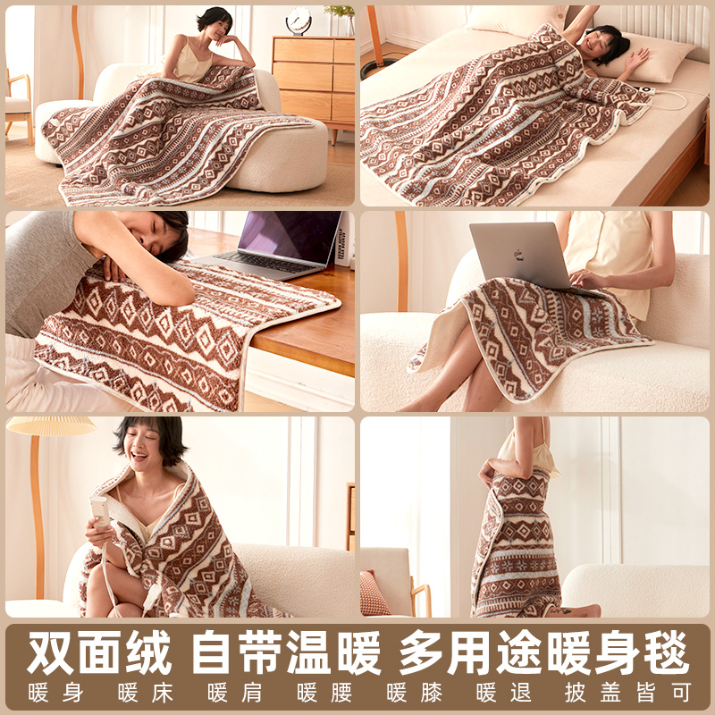 彩阳暖身毯加热盖毯办公室披毯暖腰部盖腿电褥子护膝电热暖身毯女
