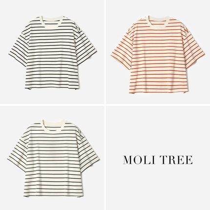 WTX08149 茉莉雅集 I*C干爽舒适经典条纹全棉短箱廓形宽松T恤女