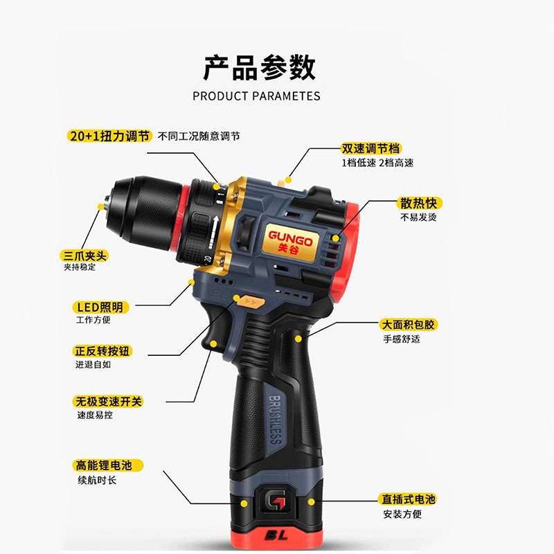 DK01跨境无线充电式手枪钻家用多功能小钢炮大功率纯铜无刷手电钻