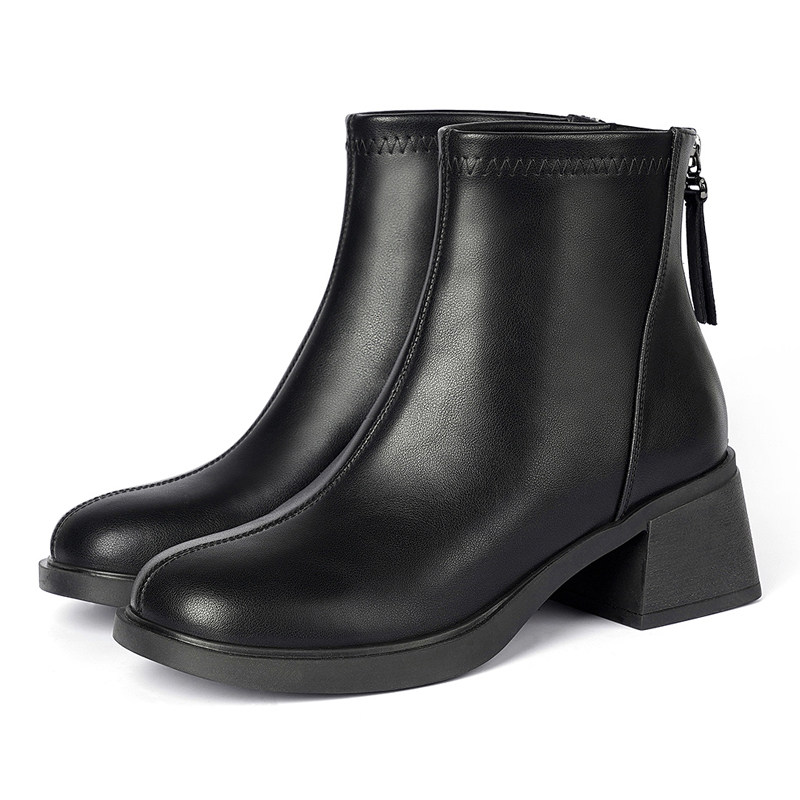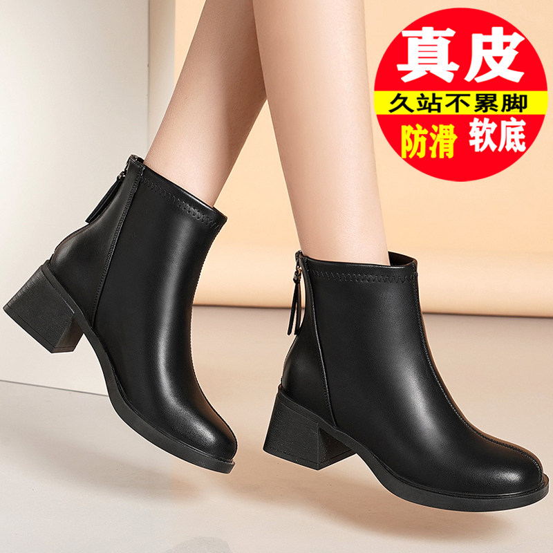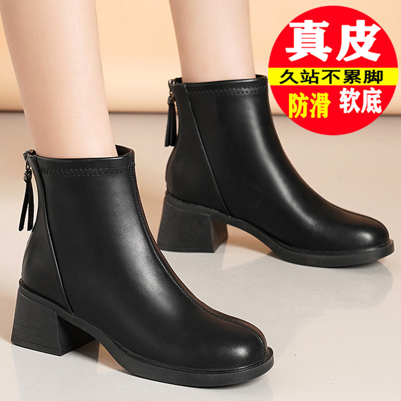 短靴女2025秋冬高跟女靴真皮粗跟马丁靴女时尚百搭瘦瘦靴舒适皮靴