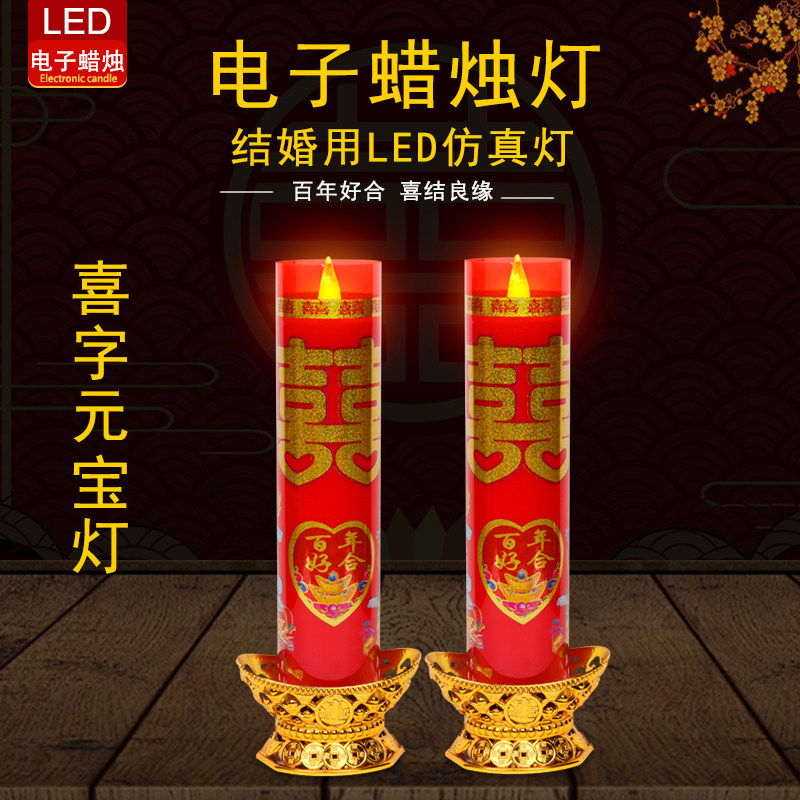 防风LED电子蜡烛灯喜字蜡烛结婚拜堂喜烛婚礼电池插电两用新款