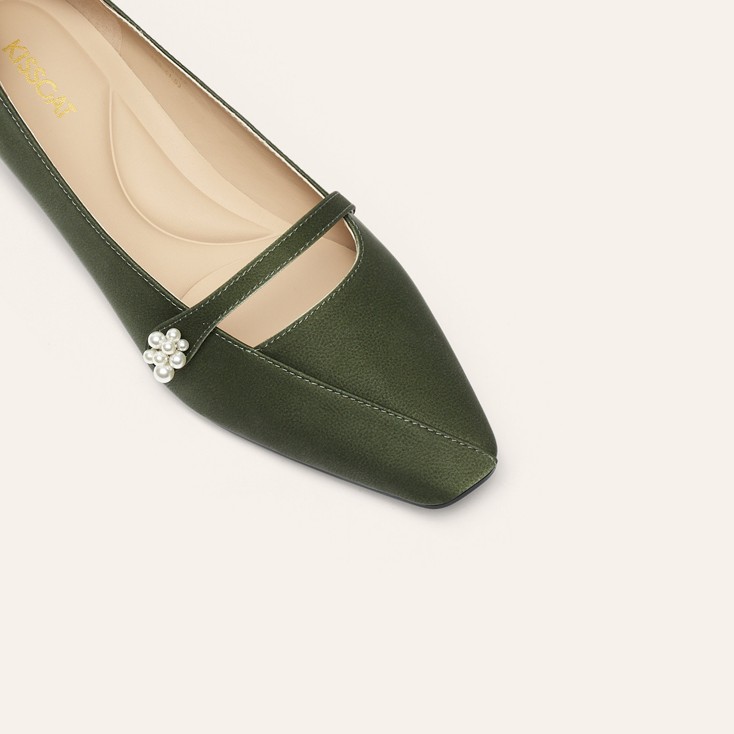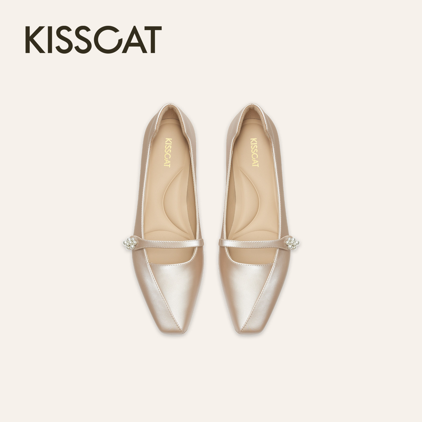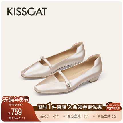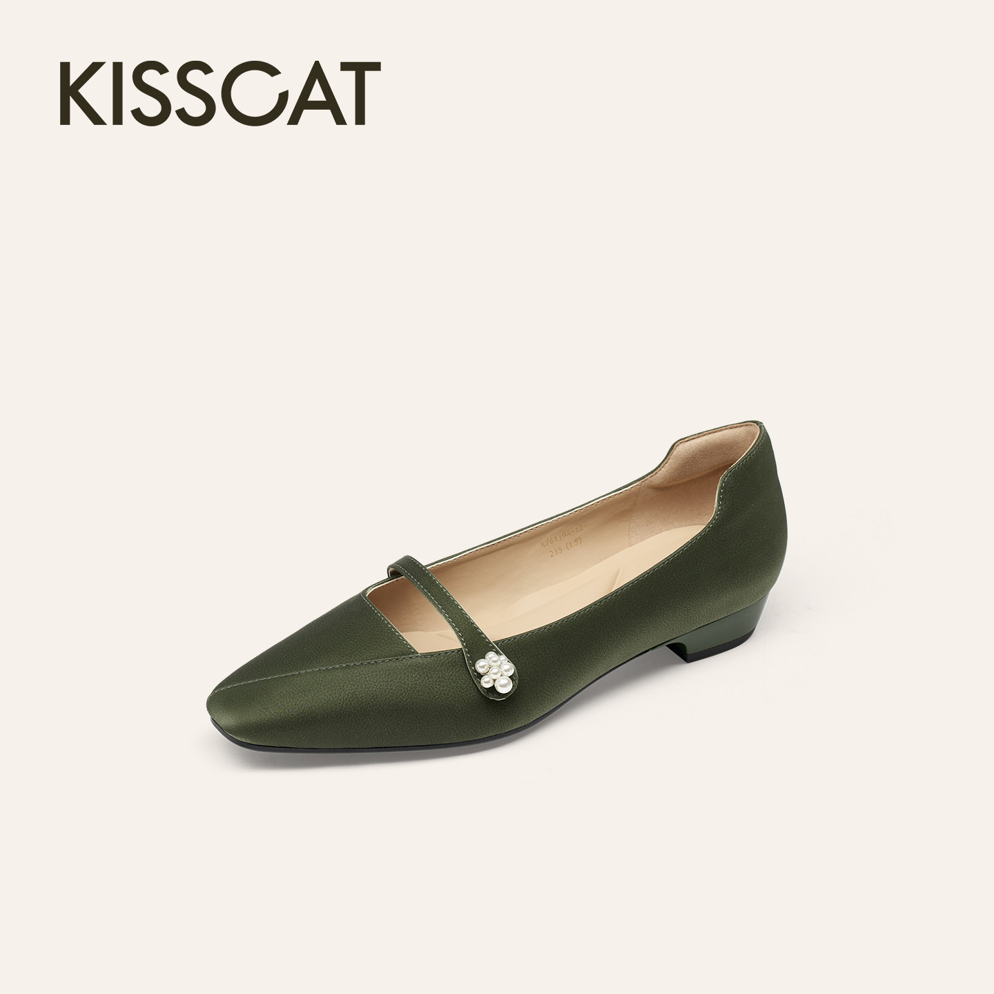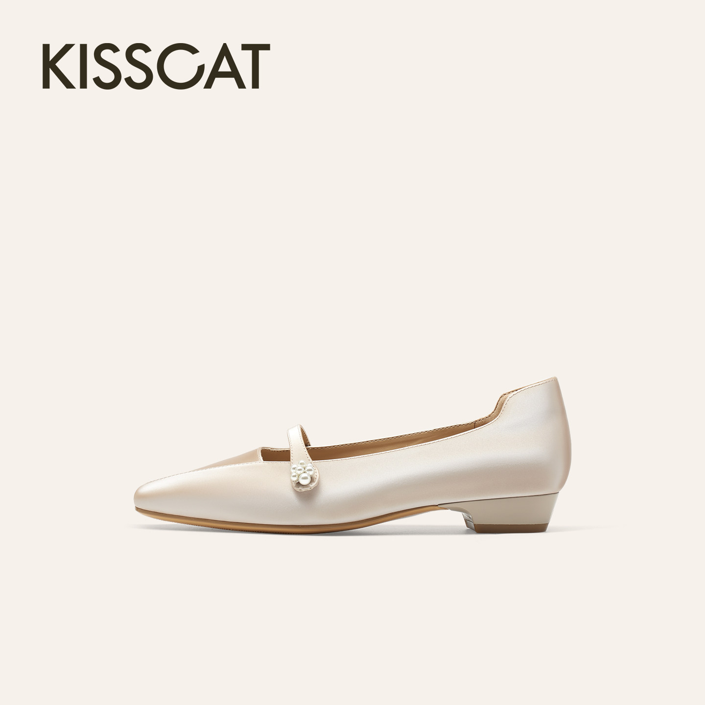 KISSCAT接吻猫新中式[自由诗]玛丽珍26新裸色低跟法式丝绒单鞋女