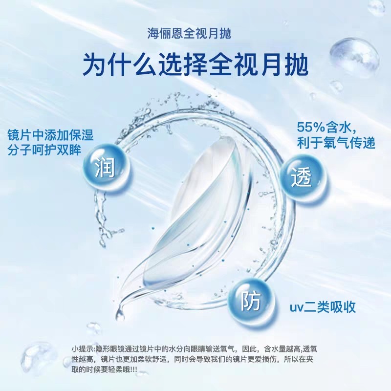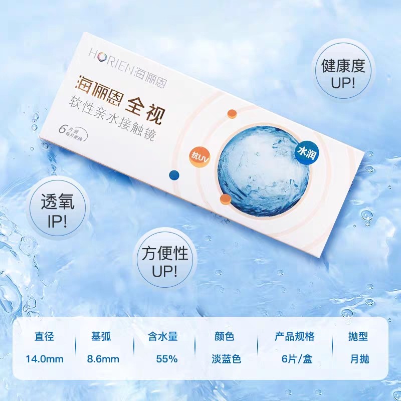 海俪恩全视月抛透明近视隐形眼镜6片装水凝胶水润30日正品旗舰店