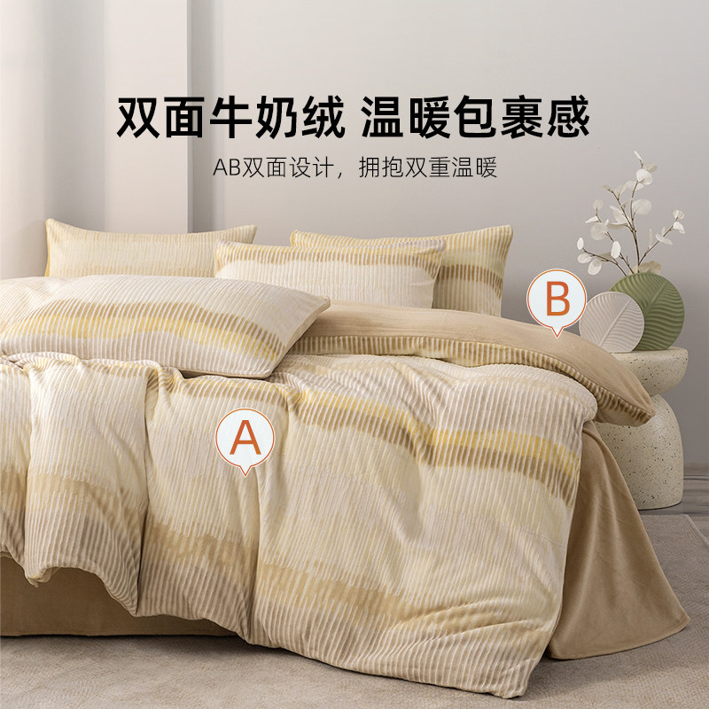 梦洁牛奶绒2026新款床上三四件套加厚床单被套冬雕花绒珊瑚绒床品