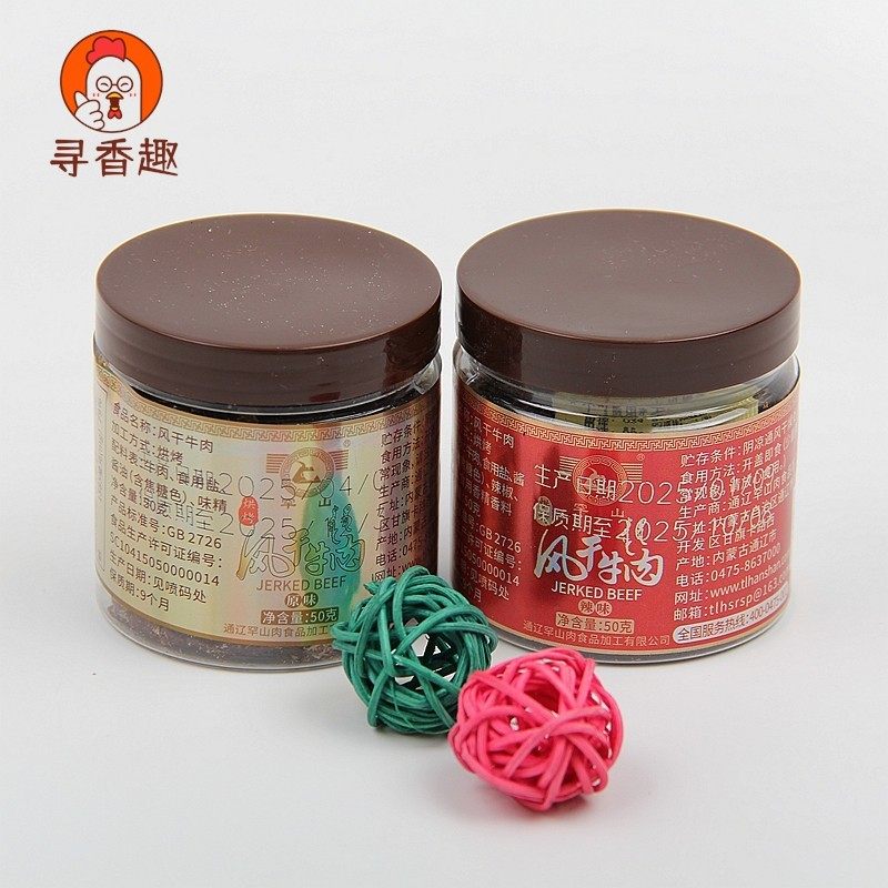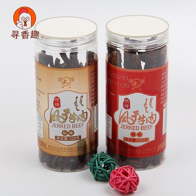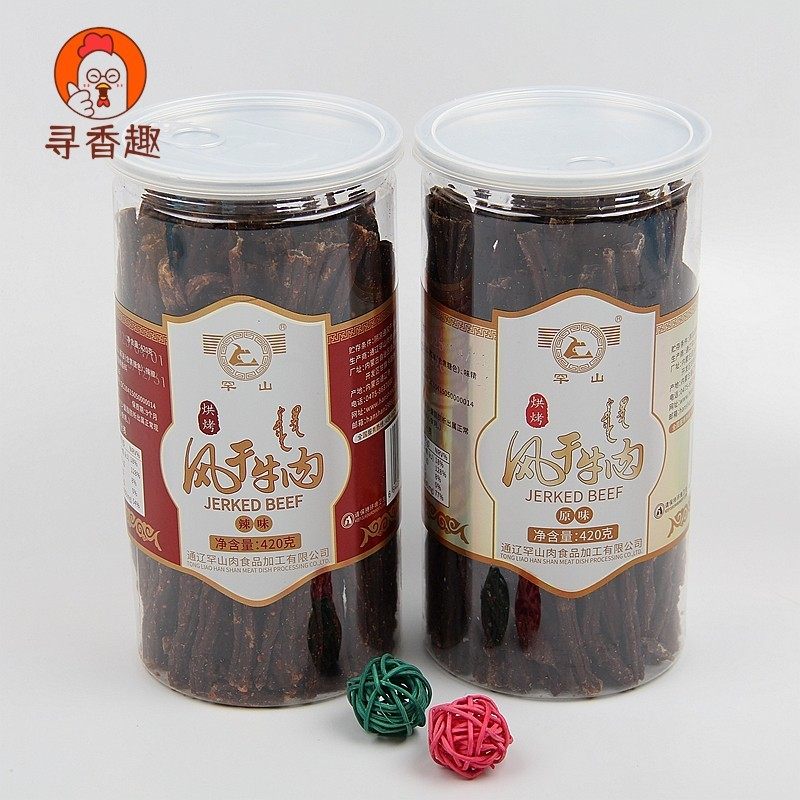 罕山 内蒙古特产 科尔沁草原风干超干九成干牛肉干桶装50克 即食