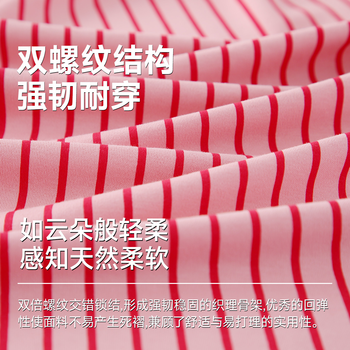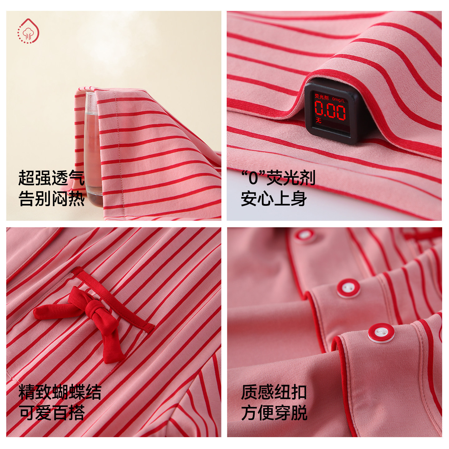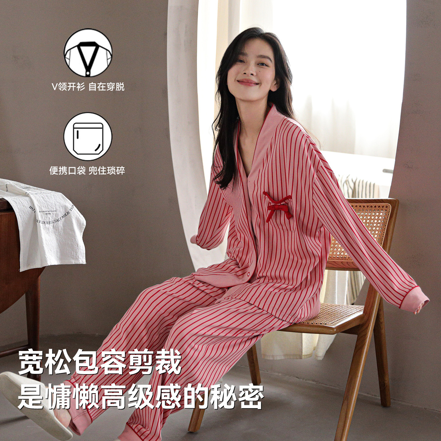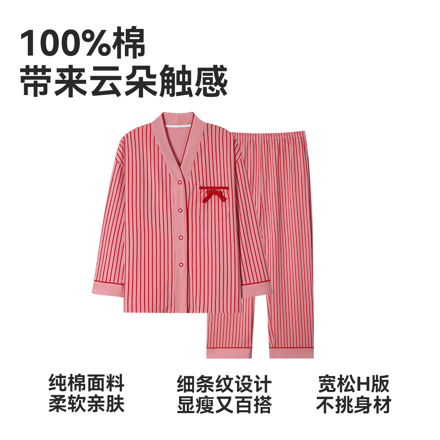 猫人2026新款纯棉亲肤睡衣女春秋长袖红色条纹家居服套装可外穿