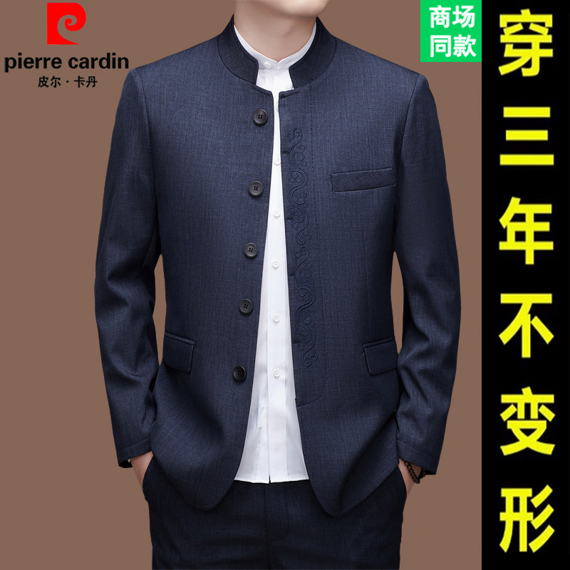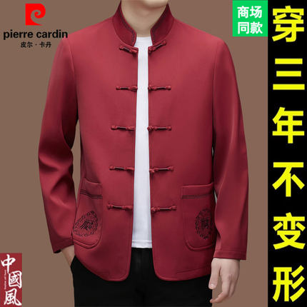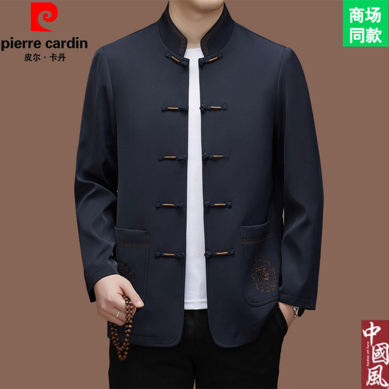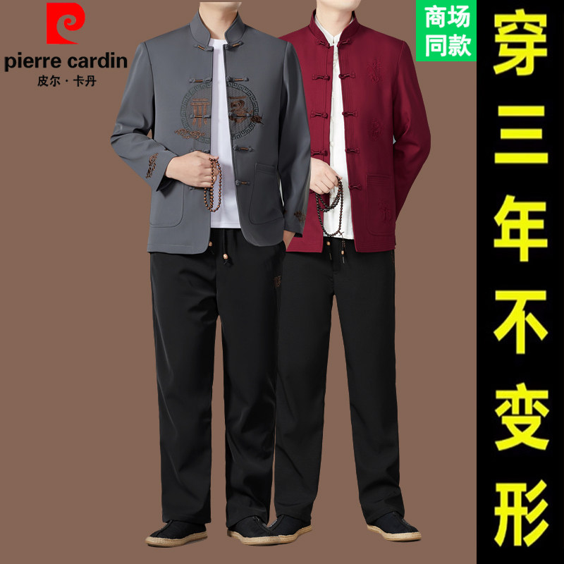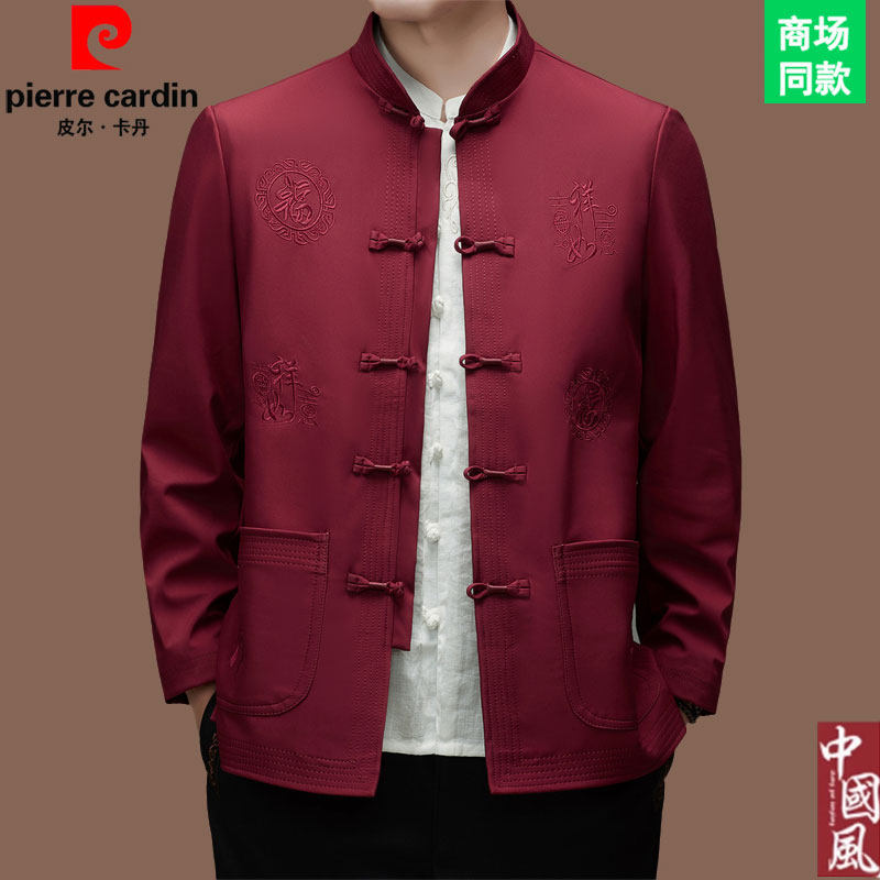 皮尔卡丹中国风唐装男春秋复古立领男装夹克生日结婚礼服宴会套装