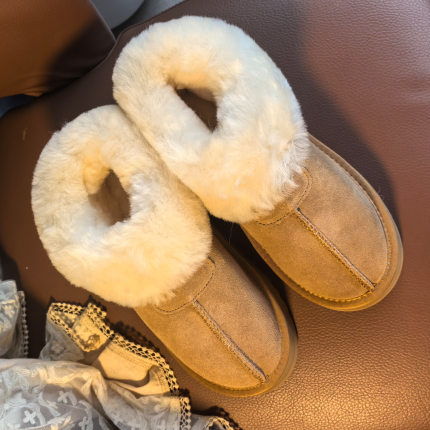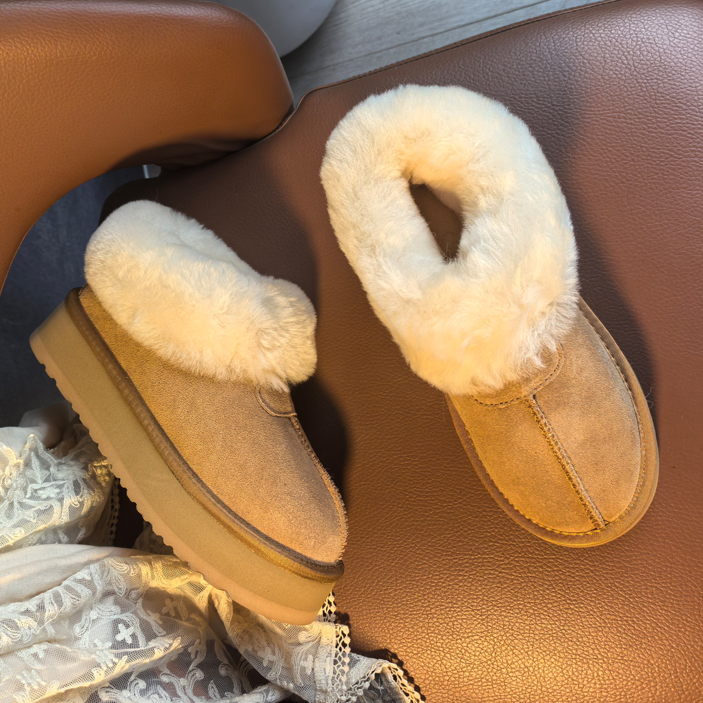 无类2025新款雪地靴低帮厚底增高短筒羊皮毛一体女短筒面包鞋