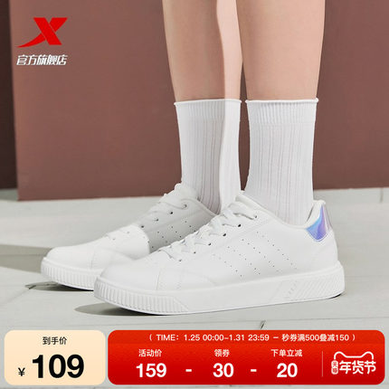 特步网球板鞋情侣绿尾小白鞋女士2025冬季休闲鞋轻便潮流运动鞋男