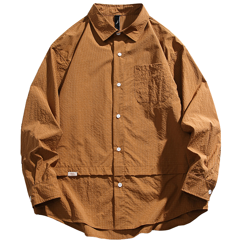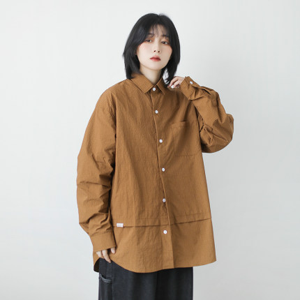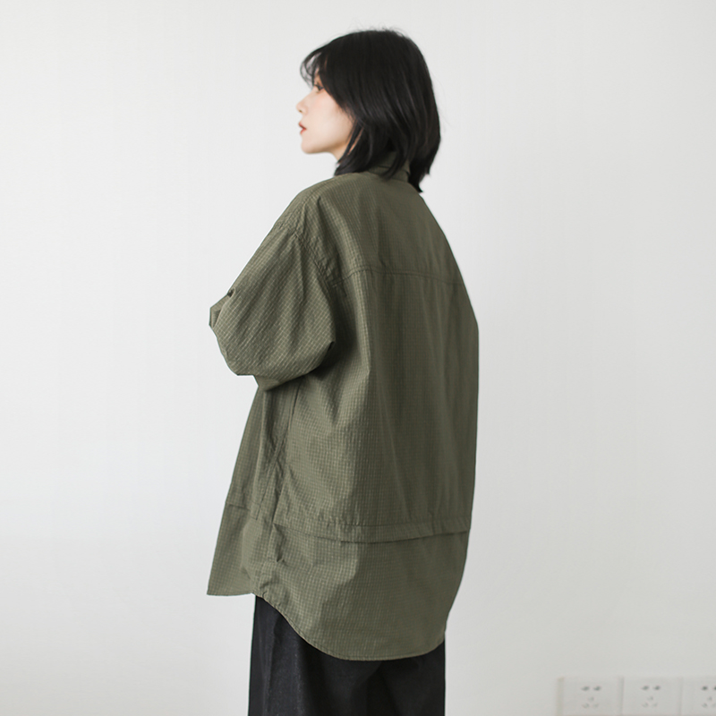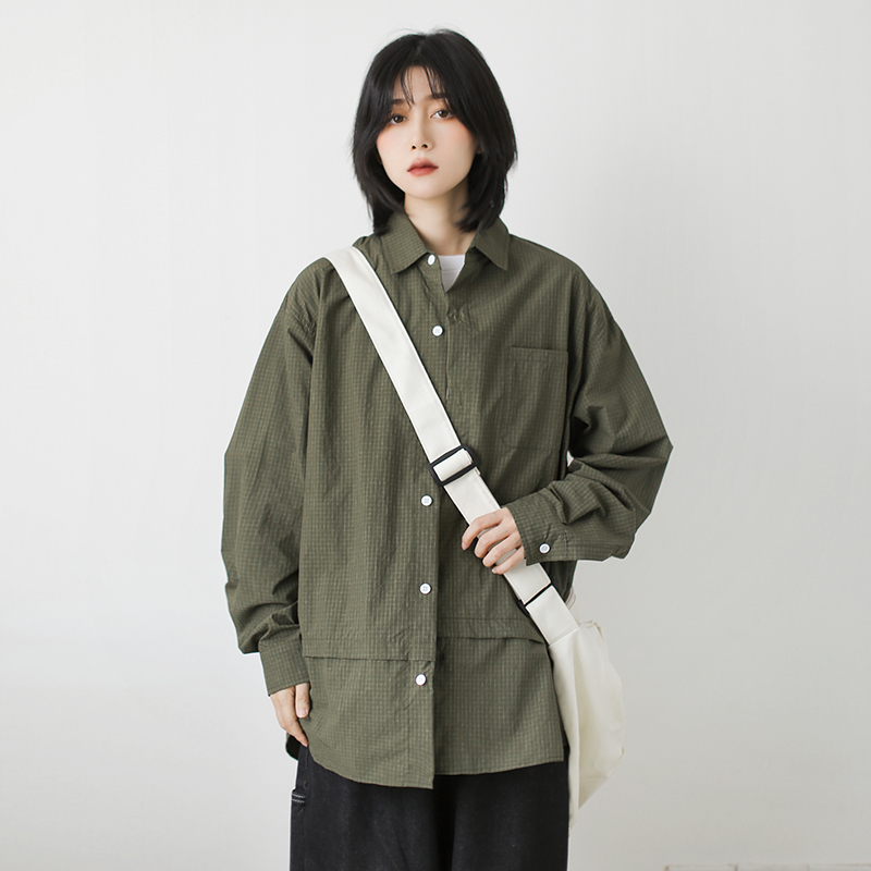 日系中性风格子拼接工装衬衫