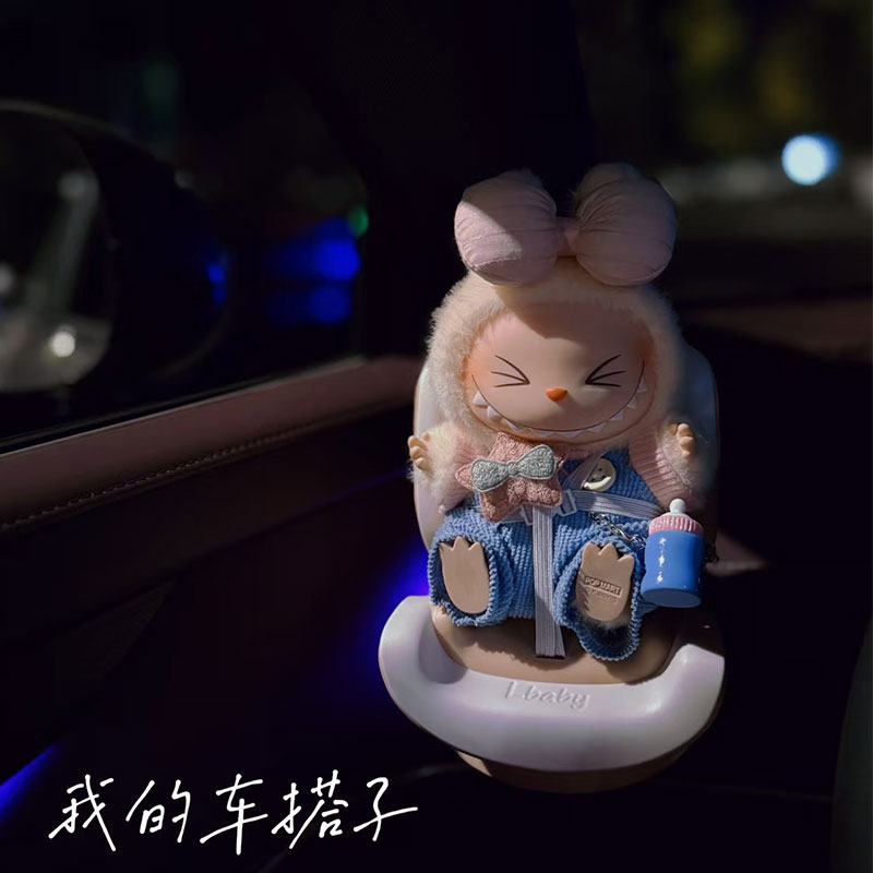 拉布布labubu适配安全座椅搪胶娃娃车载玩偶摆件汽车出风口装饰品